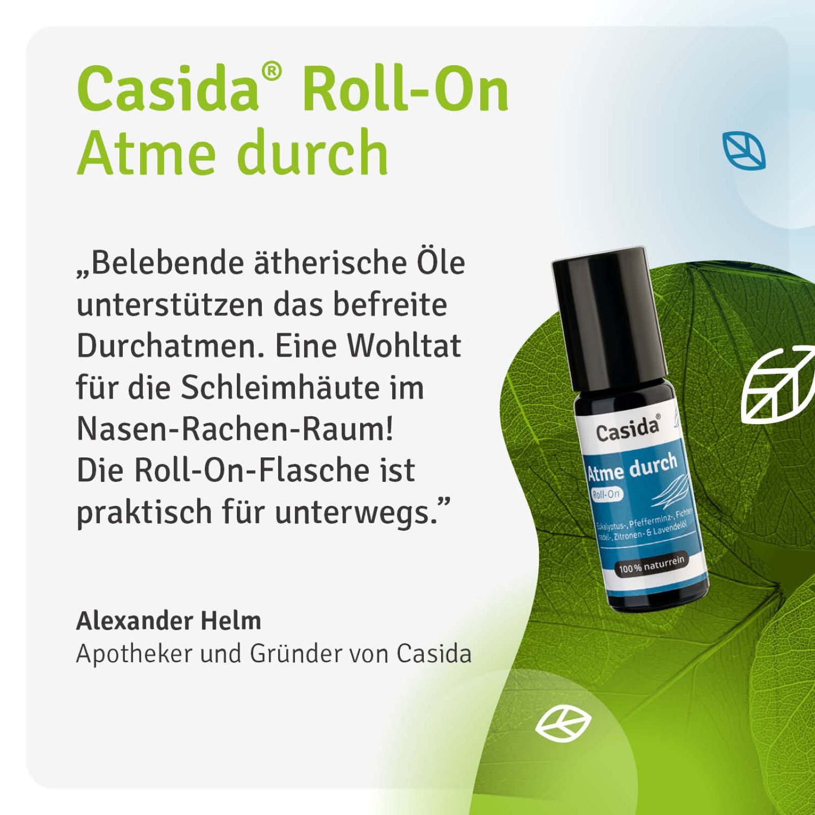 Der Duft ist eine Wohltat für den Nasen-Rachen-Raum und unterstützt das freie Atmen. Die ätherischen Öle aus Eukalyptus, Pfefferminz, Fichtennadel und Zitrone unterstützen die Atmung. Die Kombination schafft eine synergetische Wirkung für Frische und Klarheit in den Atemwegen.