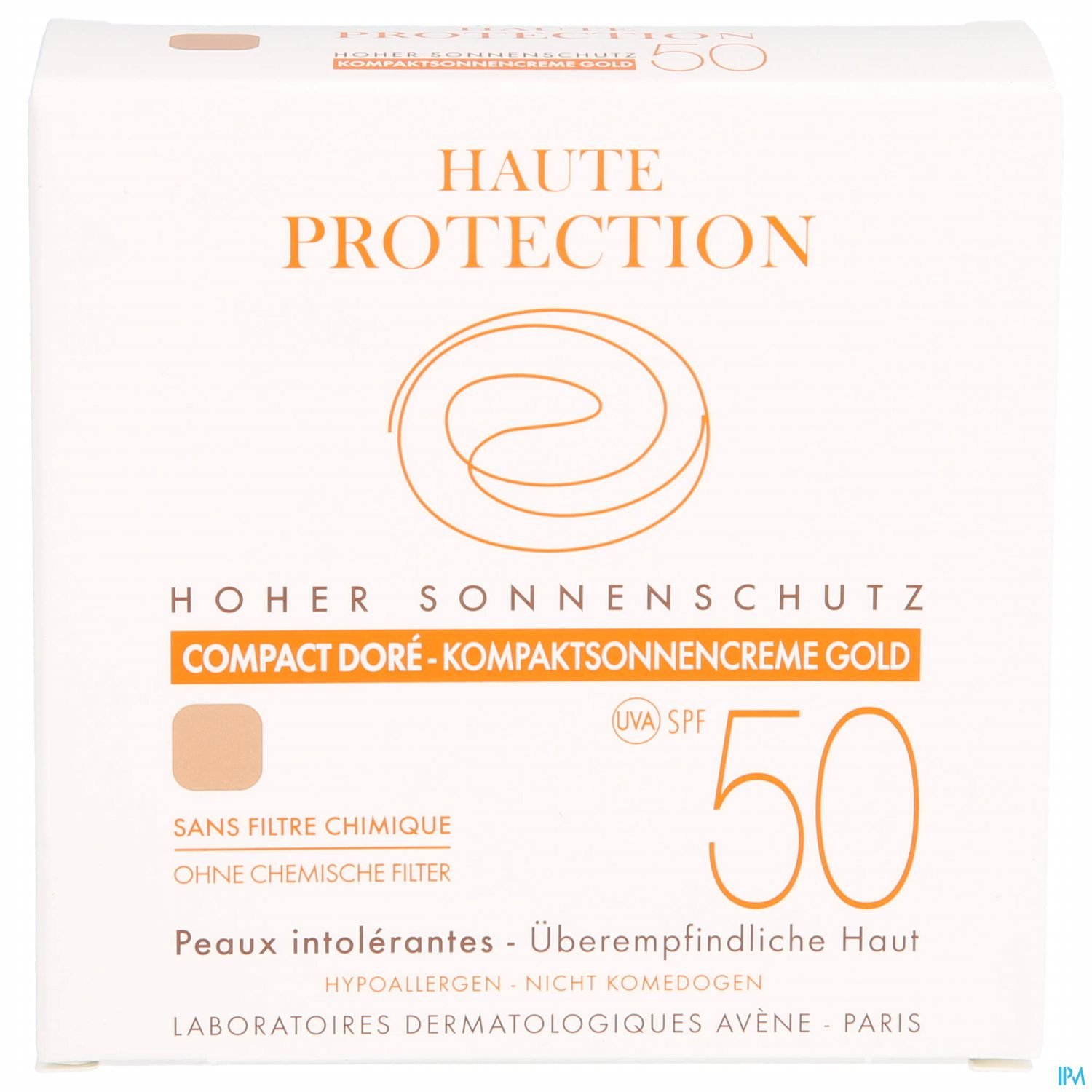 Kompaktsonnencreme Gold SPF 50, ein Komplex aus 100 % stabilen mineralischen Filtern, bietet sehr gute Verträglichkeit und hohen Schutz vor UVB- und UVA-Strahlen (kurz und lang). Speziell für empfindliche bis intolerante Haut formuliert, hilft er, Hautunreinheiten zu kaschieren. Entwickelt für Haut mit ungleichmäßiger Pigmentierung, für einen natürlichen, gleichmäßigen und matten Teint. Pro-Tocopherol, ein starkes Antioxidans, trägt zum Schutz der Zellen vor freien Radikalen bei.