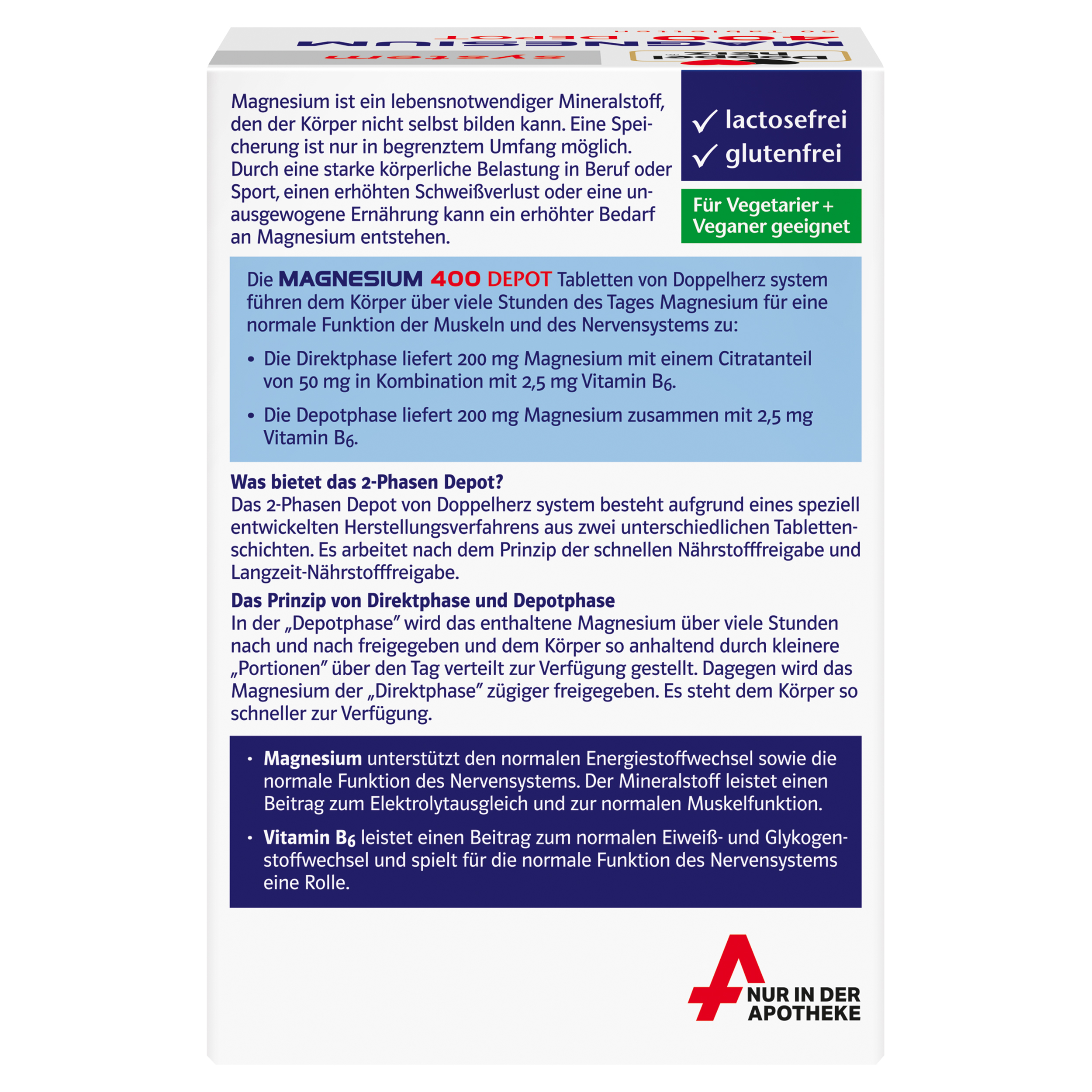 Doppelherz system MAGNESIUM 400 DEPOT beinhaltet 400 mg Magnesium