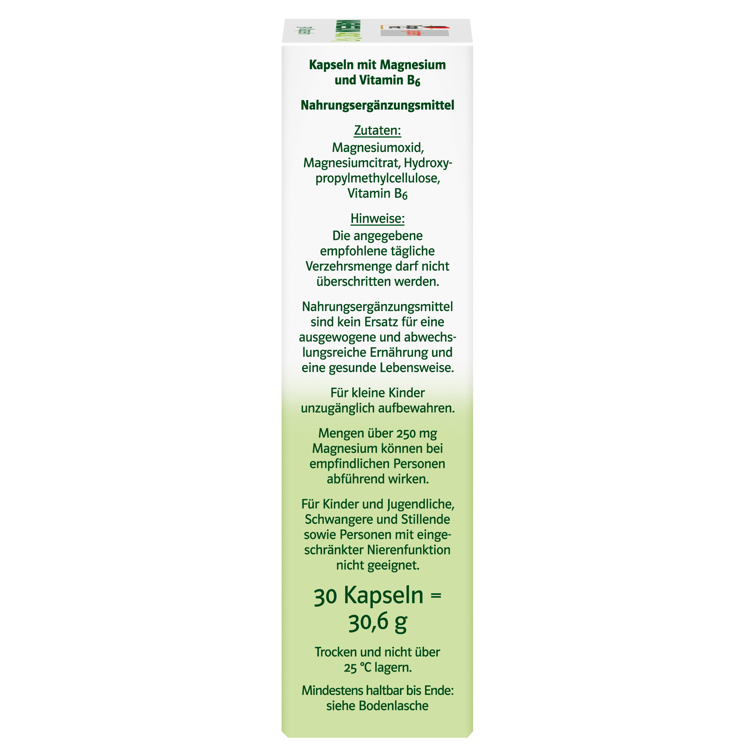 Die angegebene empfohlene tägliche Verzehrsmenge darf nicht überschritten werden. Nahrungsergänzungsmittel sind kein Ersatz für eine ausgewogene und abwechslungsreiche Ernährung und gesunde Lebensweise. Für kleine Kinder unzugänglich aufbewahren.