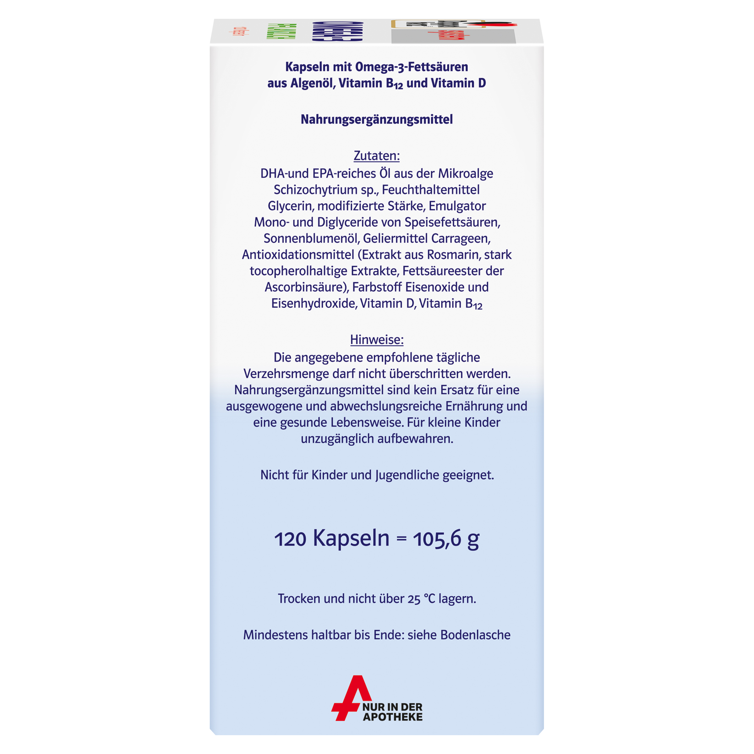 Omega-3-Fettsäuren EPA und DHA aus Algenöl in Kombination mit 10 µg