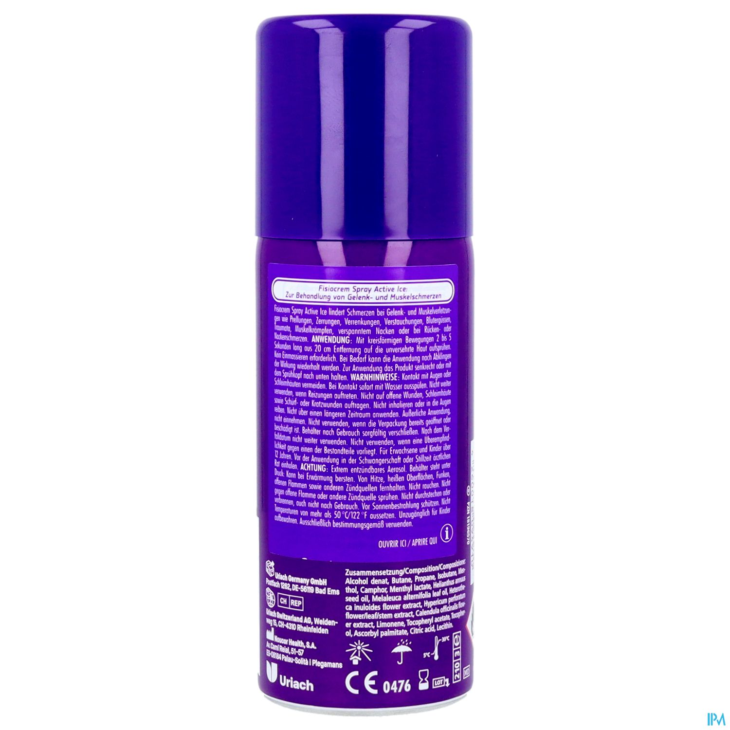 fisiocrem Spray Active Ice ist ein Medizinprodukt für Erwachsene und Kinder ab 12 Jahren. Zur Schmerzlinderung bei Gelenk- und Muskelverletzungen wie Prellungen, Zerrungen, Verrenkungen, Verstauchungen, Blutergüssen, Traumata, Muskelkrämpfen, verspanntem Nacken oder Rücken- oder Nackenschmerzen. Nicht auf offene Wunden, Schleimhäute, Schürfwunden oder Risse auftragen. Das Etikett und die Gebrauchsanweisung bitte sorgfältig durchlesen.