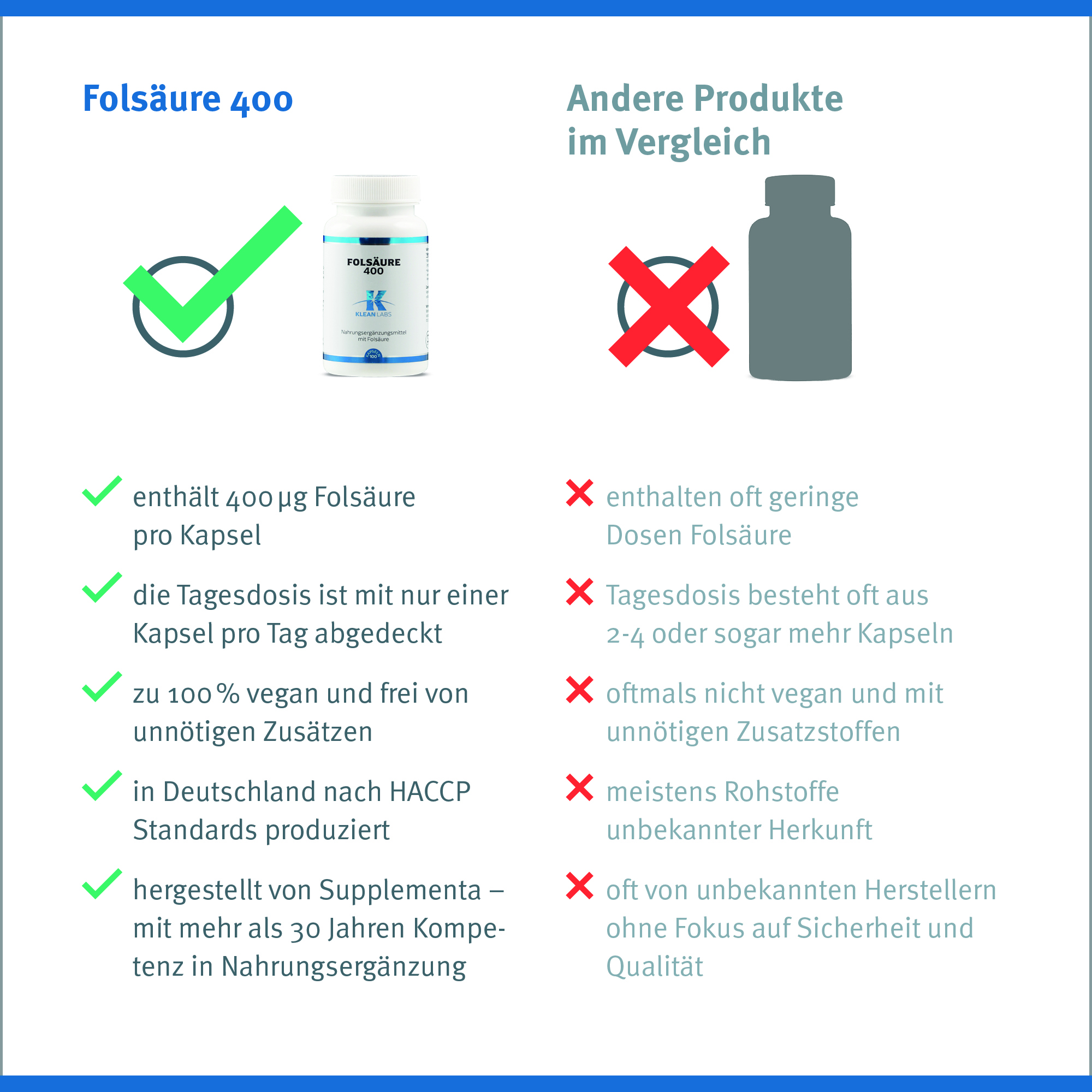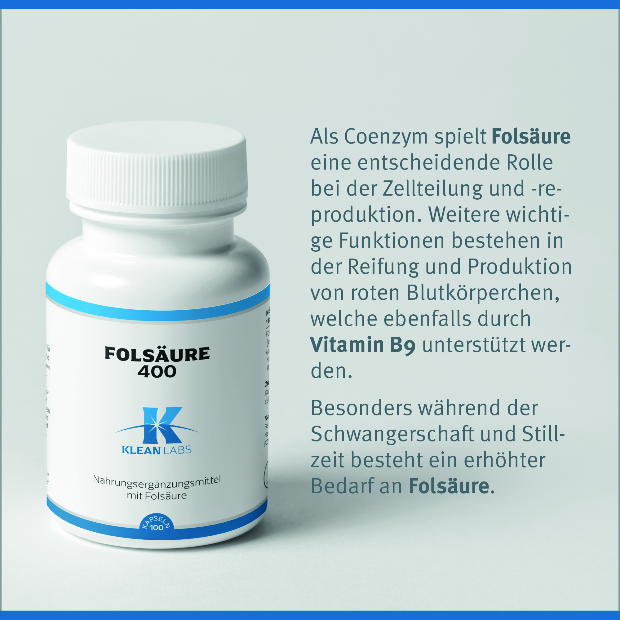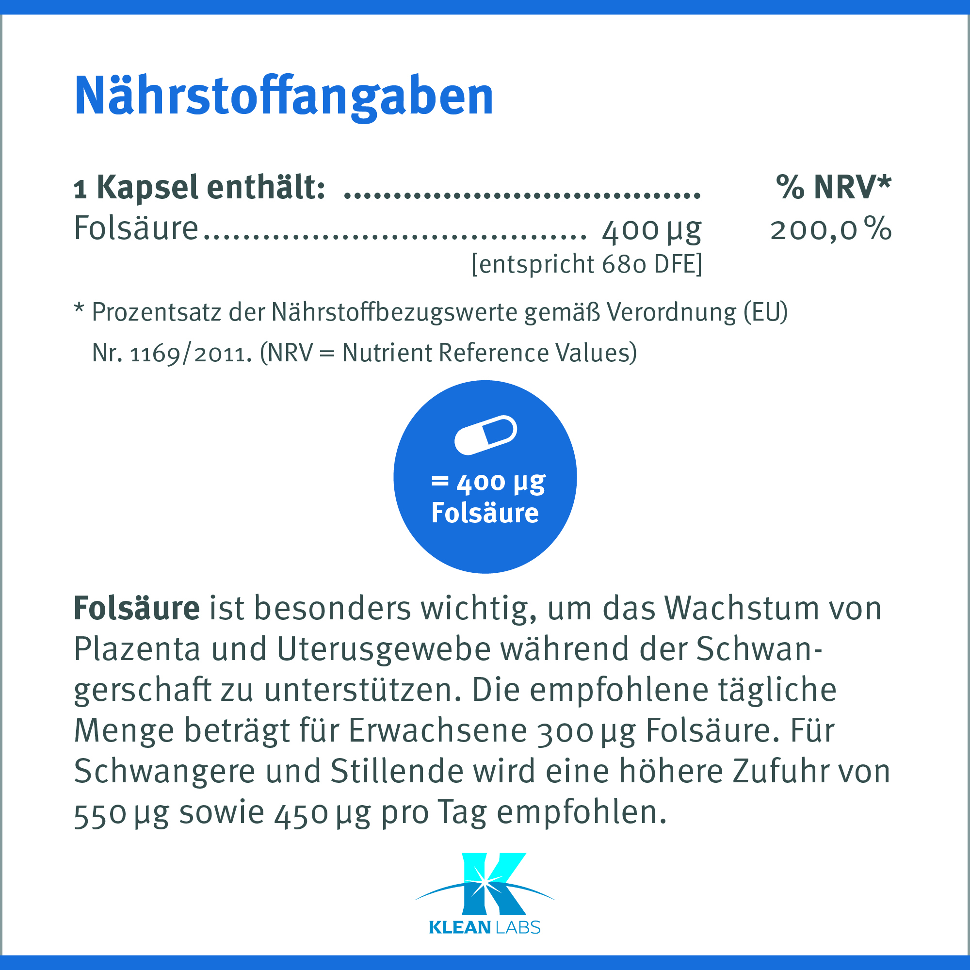 Folsäure 400 Klean Labs Kapseln (100 Stk.)