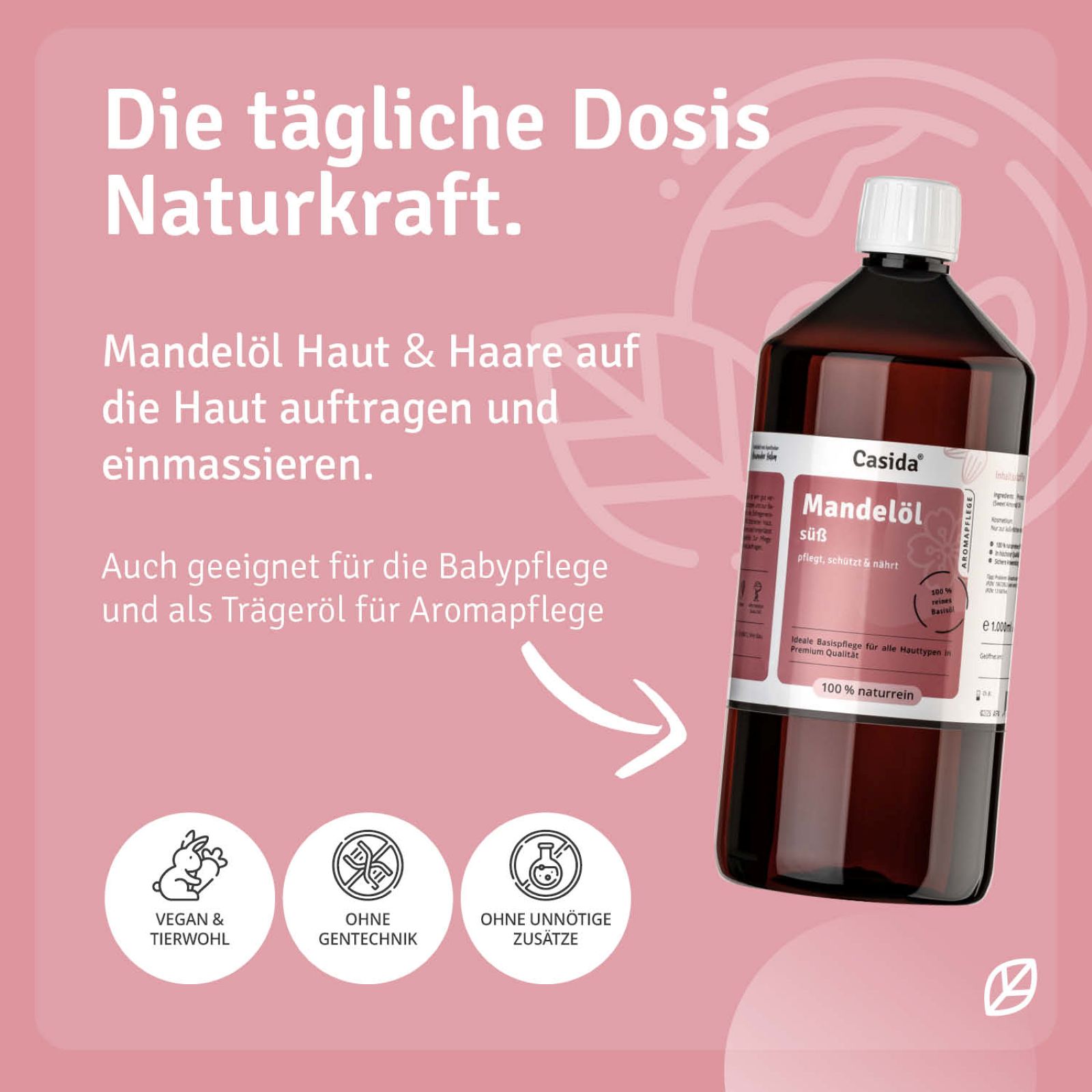 Naturreines Mandelöl zur intensiven Pflege von Haut & Haaren - 1000 ml