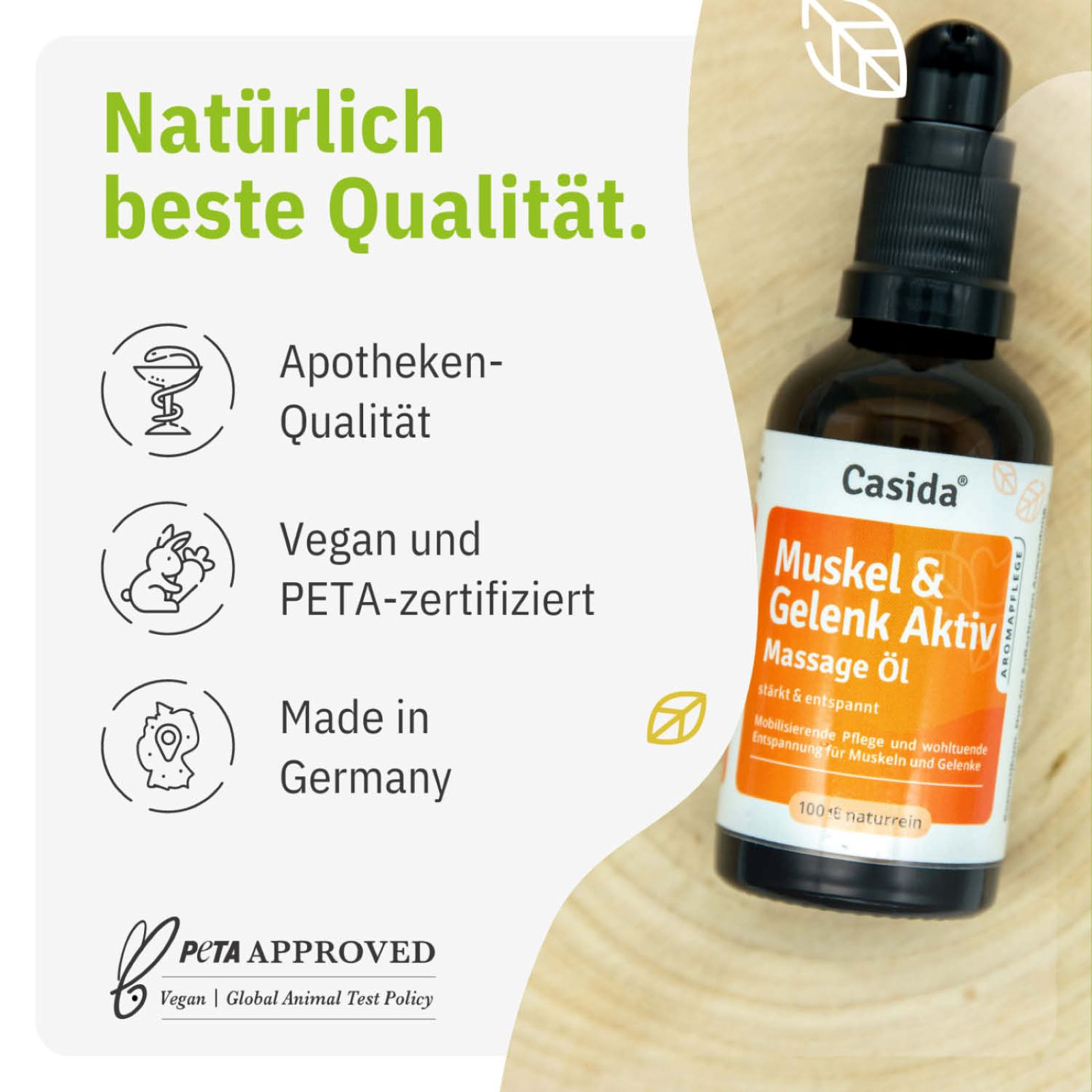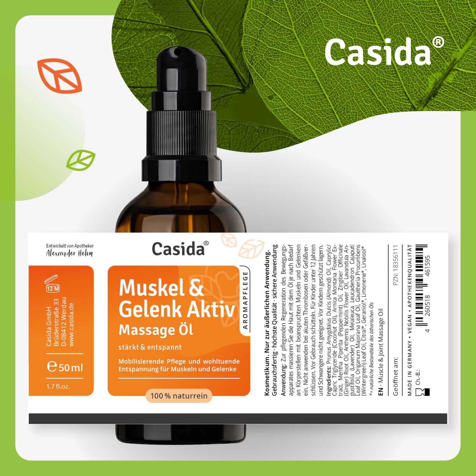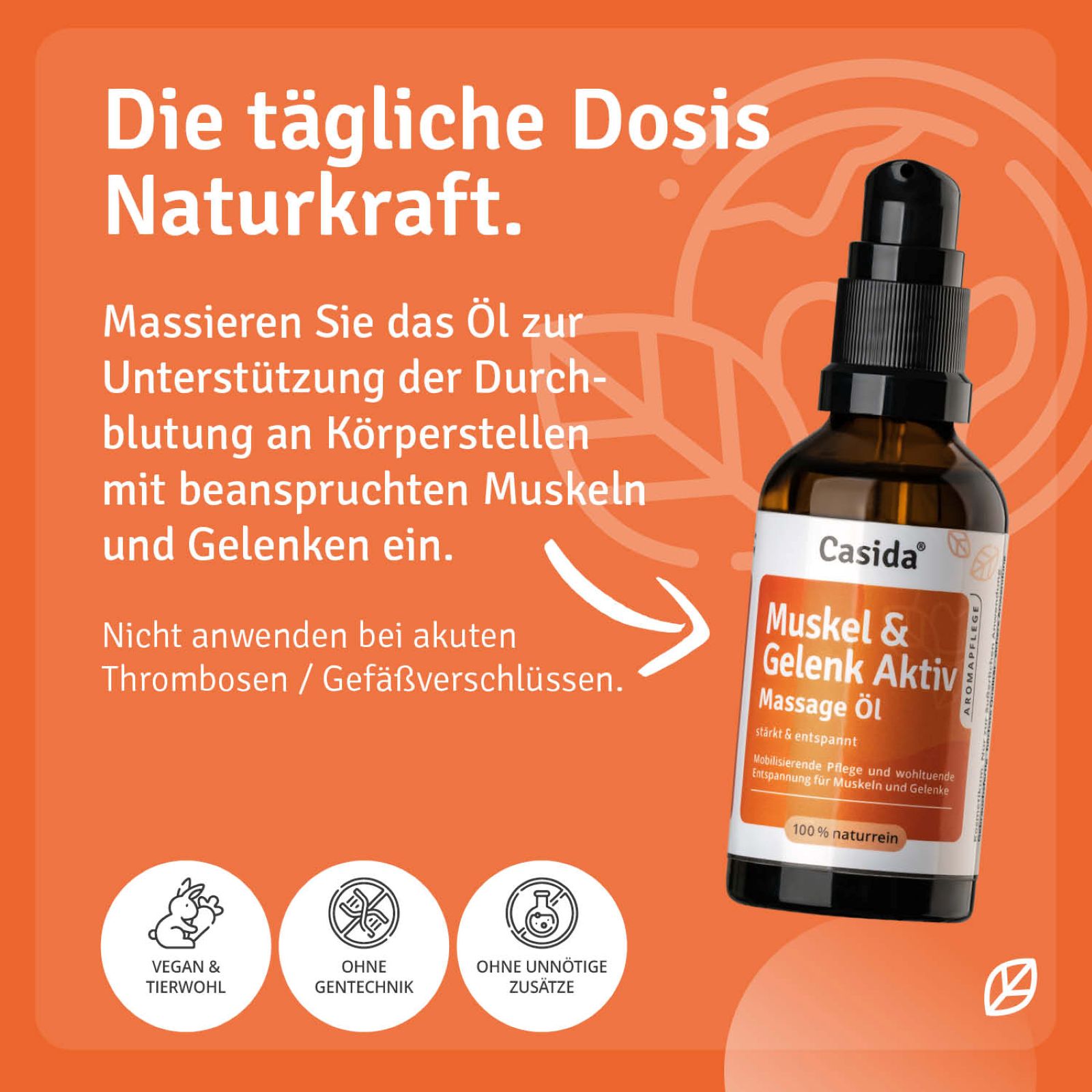 Das Muskel amp; Gelenk Aktiv Öl ist eine mobilisierende Pflege und wohltuende Entspannung für beanspruchte Muskeln und Gelenke. Das Öl unterstützt den regenerierenden Effekt einer Massage. Es zieht schnell ein und kann so an den betroffenen Regionen gezielt angewendet werden.