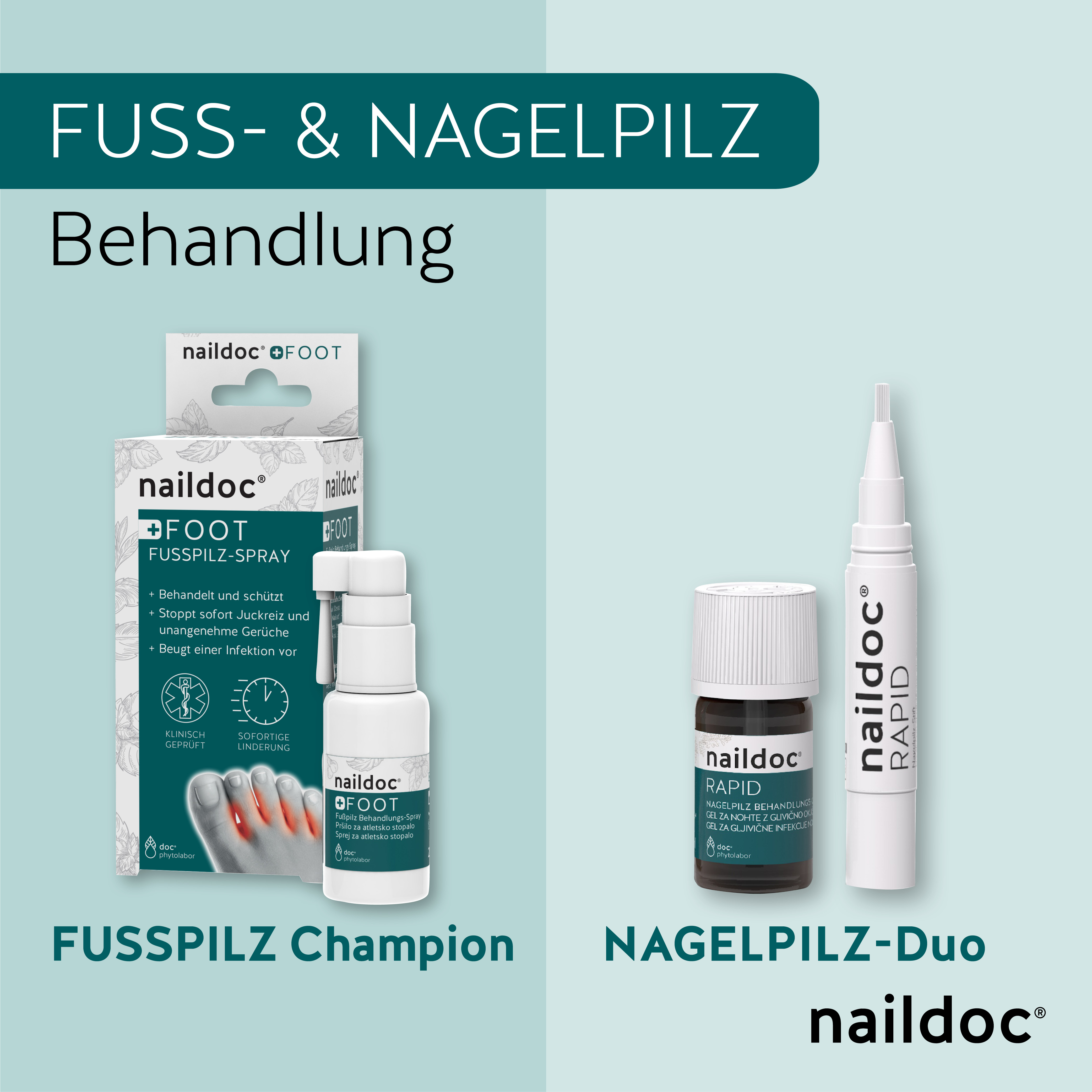 naildoc® +FOOT Fußpilz- Spray dient zur Behandlung und Vorbeugung von Fußpilz.
