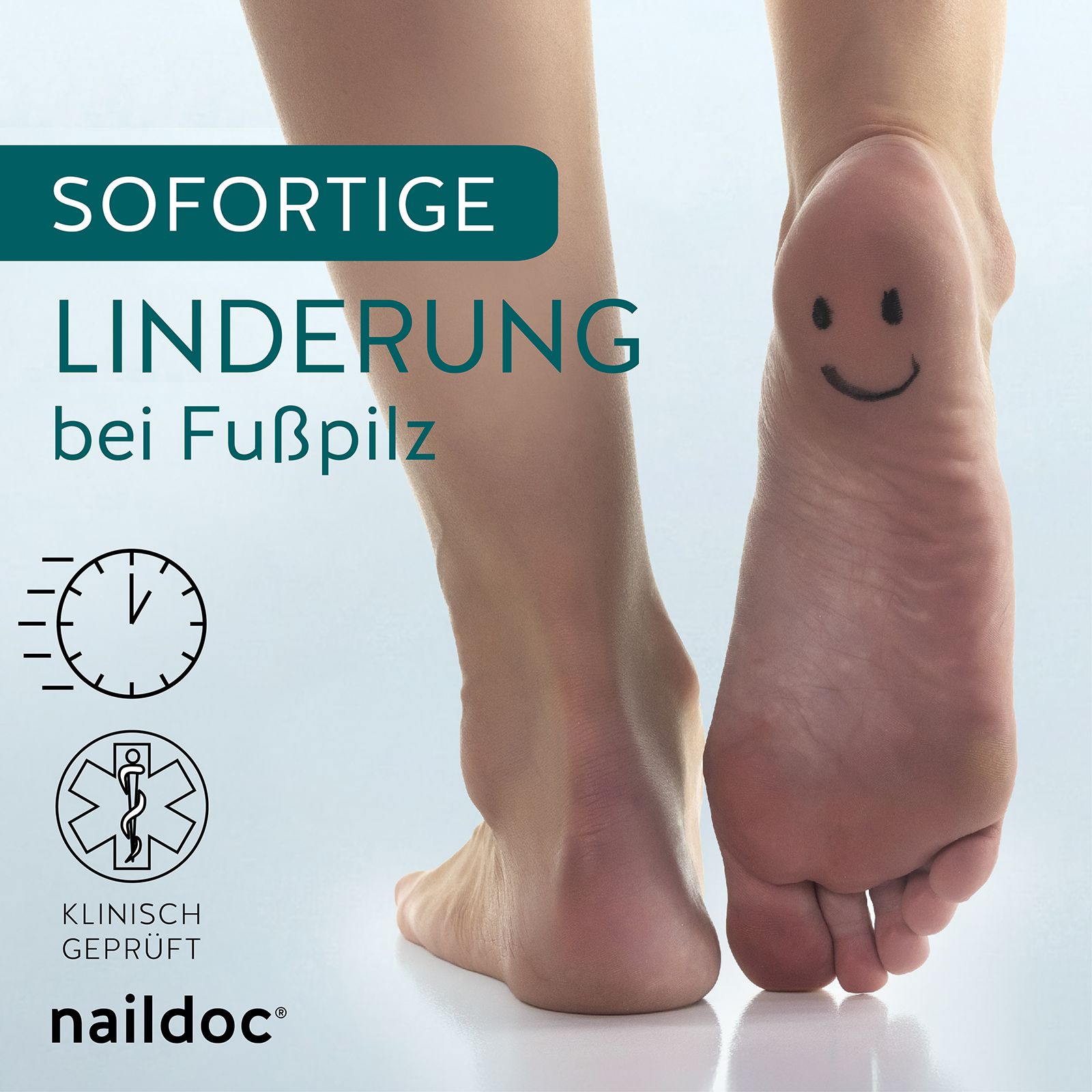 naildoc® +FOOT Fußpilz- Spray dient zur Behandlung und Vorbeugung von Fußpilz. Fußpilz geht häufig mit einem juckenden roten Ausschlag zwischen den Zehen und an den Fußsohlen einher.