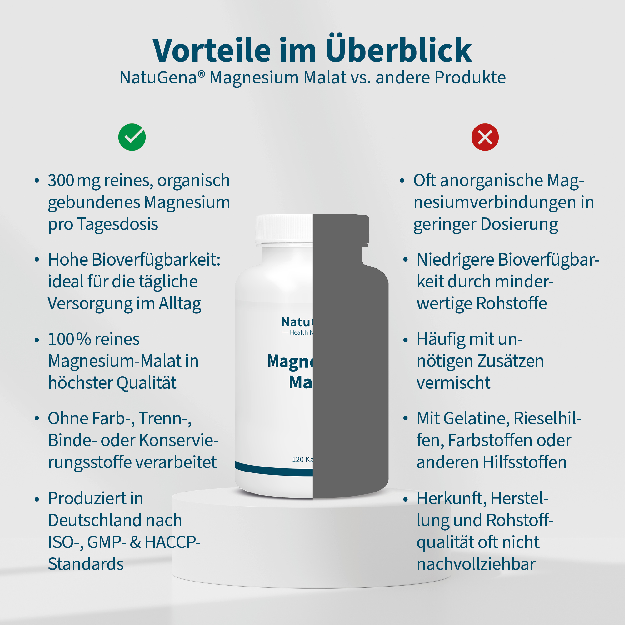 NatuGena Magnesium-Malat liefert Magnesium in organisch gebundener Form als Magnesium Malat. Dabei handelt es sich um das Magnesiumsalz der Apfelsäure, einer natürlich vorkommenden Verbindung, die im menschlichen Stoffwechsel als Zwischenprodukt des Citratzyklus bekannt ist.