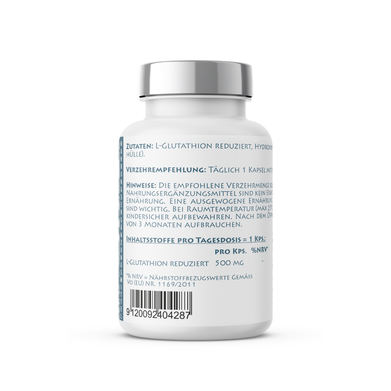 Zutaten: L-Glutathion reduziert, Hydroxypropylmethylcellulose (Kapselhülle)