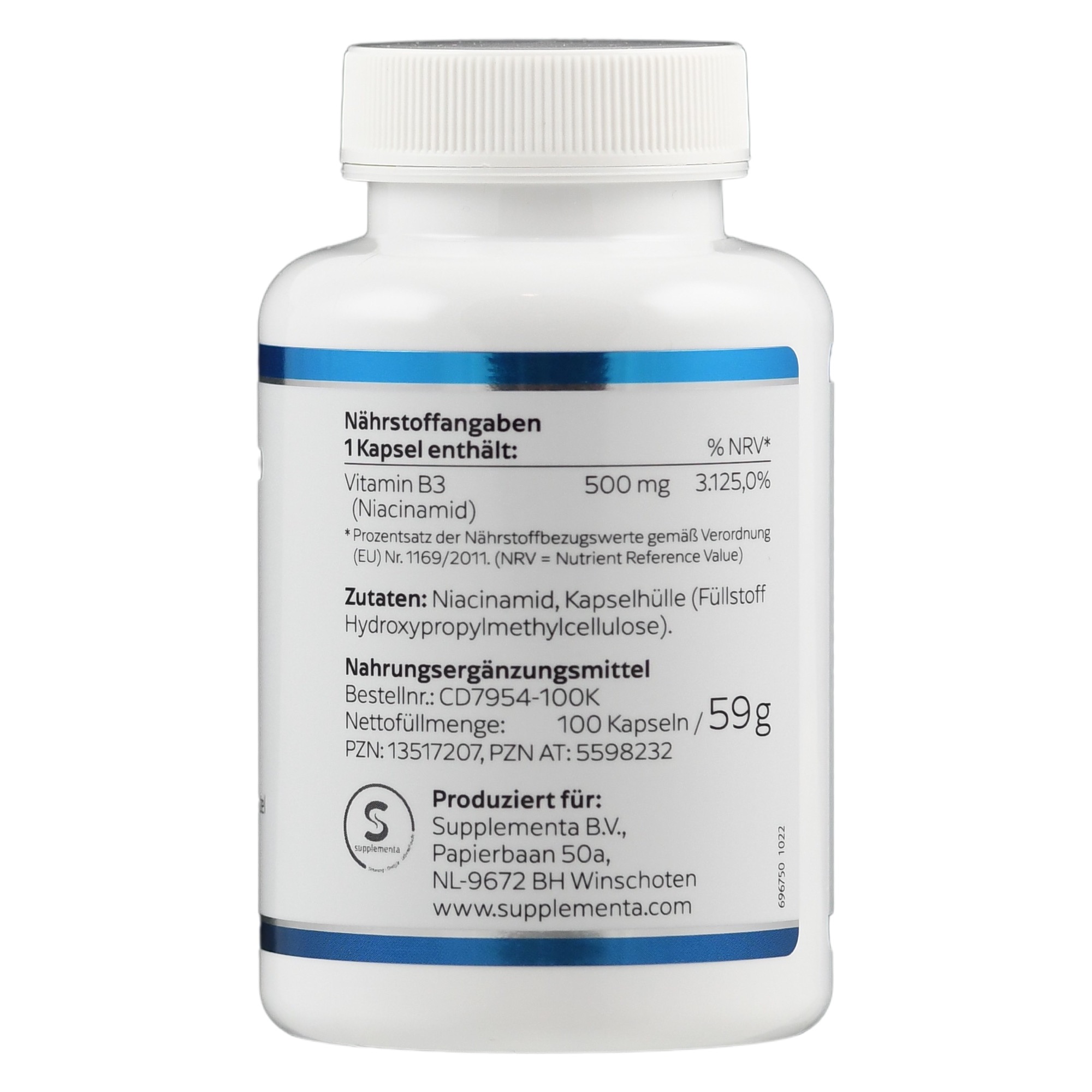 Nahrungsergänzungsmittel mit 500 mg Vitamin B3 (Niacinamid) pro