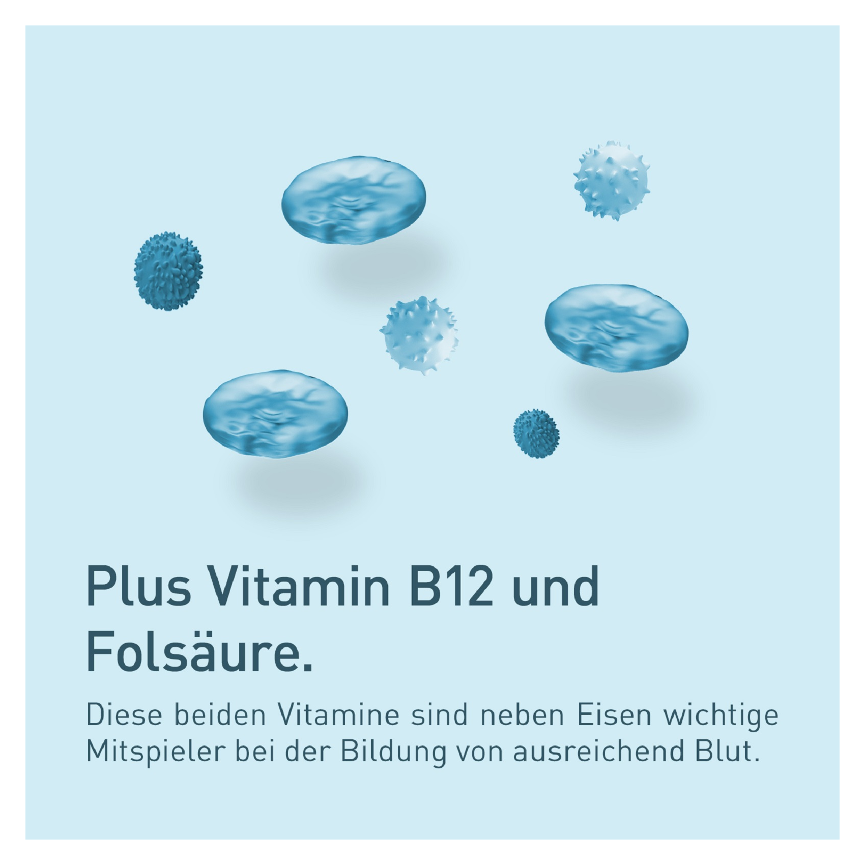 Für die Blutbildung sind neben Eisen auch Folsäure und Vitamin B12 sehr wichtig. Um diese optimal zu unterstützen, enthält nupure eisen deshalb auch diese beiden Vitamine.