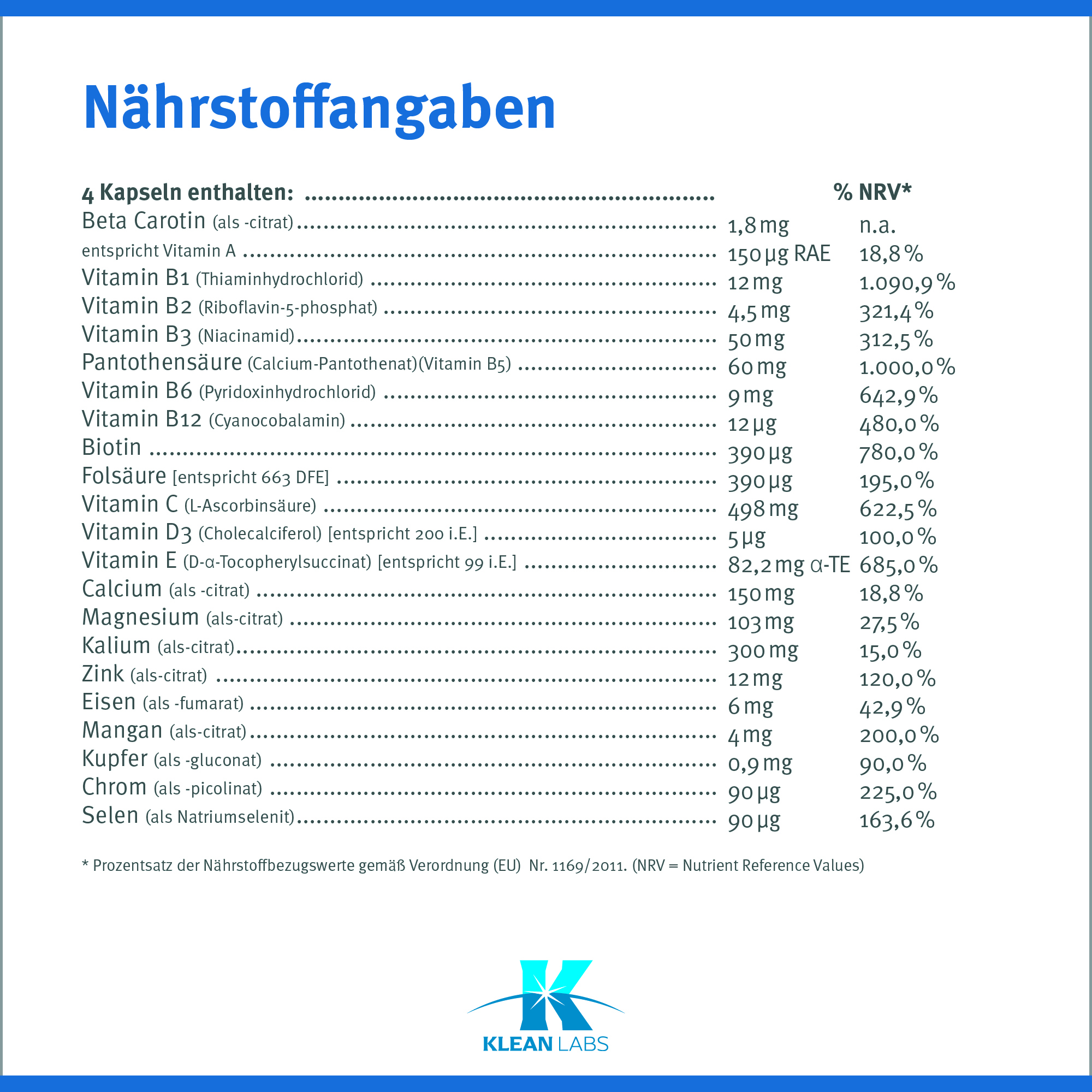 (EU) Nr. 1169/2011. (NRV = Nutrient Reference Value)