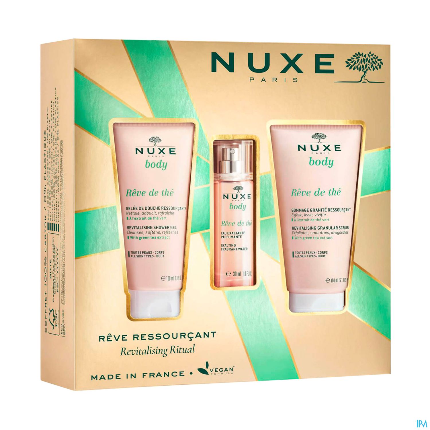 In Frankreich hergestellt, Box aus 100 % Pappe, 0 % Kunststoff.