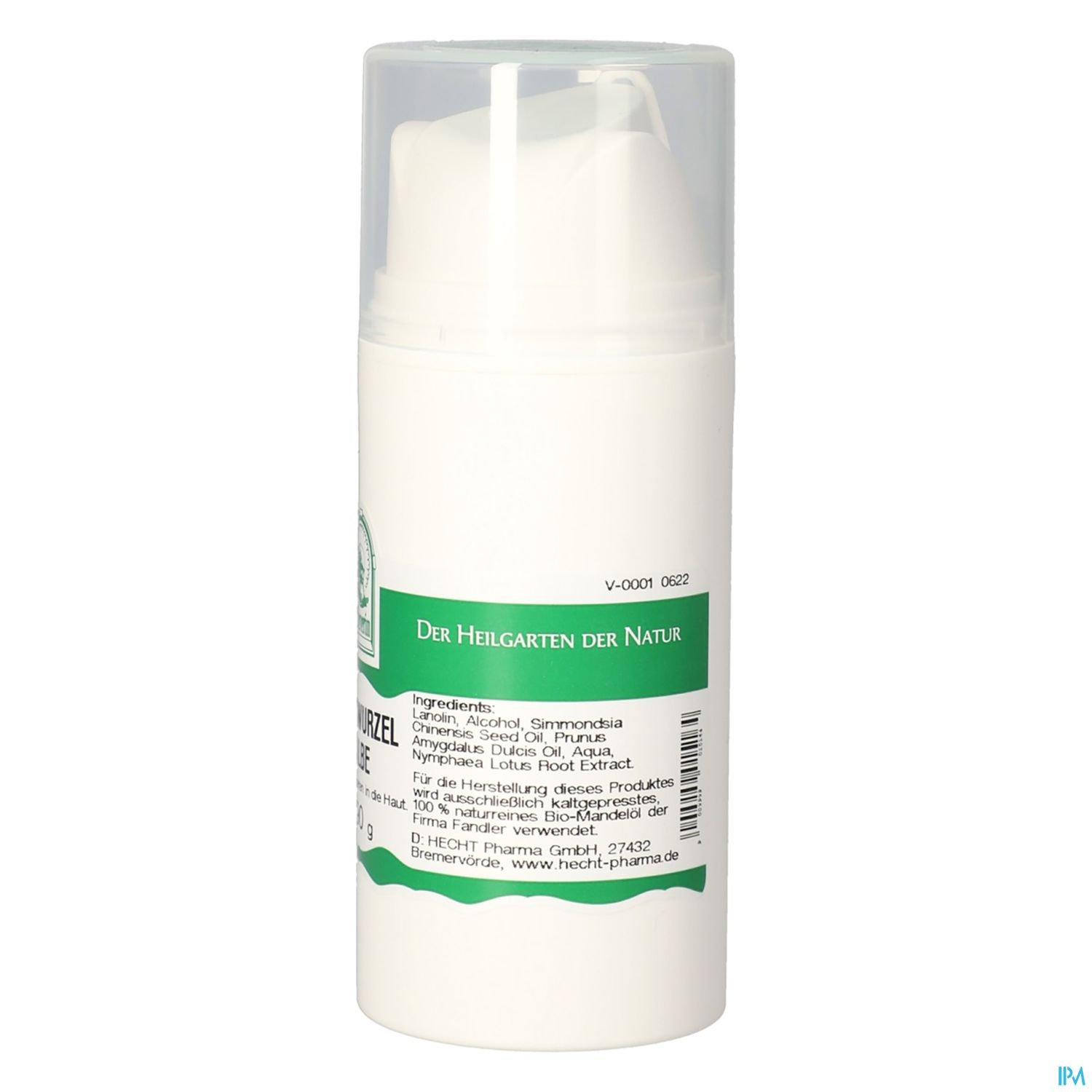 Lotuswurzel SalbeIn Indien gilt der Lotus als heilig und wird dort als Heilpflanze verwendet. Regelmäßig angewendet, wird die Haut gut mit Feuchtigkeit versorgt und intensiv gepflegt. Die Lotuswurzel enthält viel Vitamin C, welches in der Hautpflege als Antioxidans verwendet wird. Es kann die Haut vor äußeren Umwelteinflüssen, Irritationen und Reizungen schützen, sowie freie Radikale unschädlich machen.