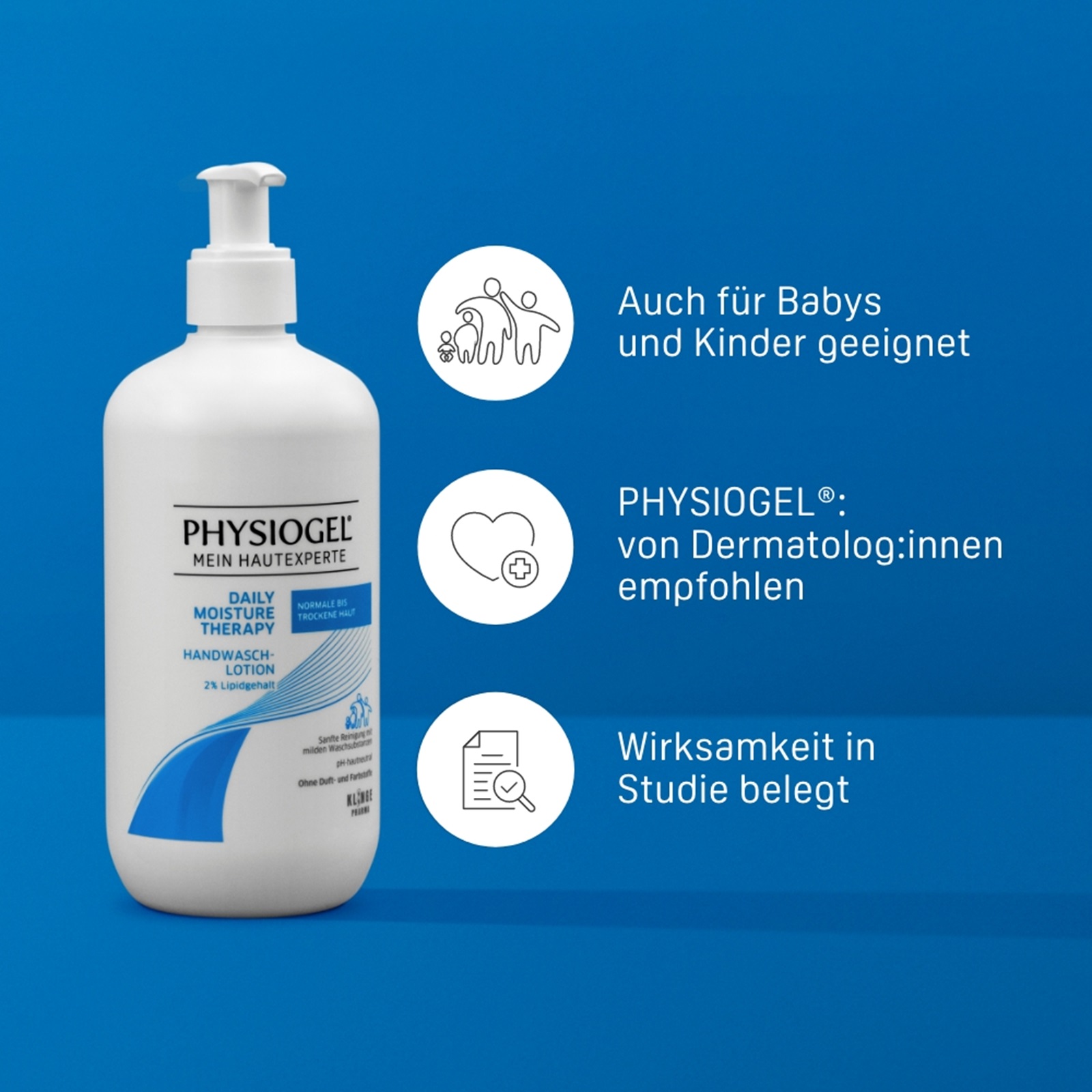 Die PHYSIOGEL® Daily Moisture Therapy Handwaschlotion respektiert durch ausgewählte und milde Inhaltsstoffe die Bedürfnisse trockener Haut. Sie weist eine Zusammensetzung auf, die auf Duft- und Farbstoffe verzichtet und sich zudem durch wenige Inhaltsstoffe auszeichnet. Auch für Babys und Kinder geeignet - Die sanfte und milde Handwaschlotion für die ganze Familie.