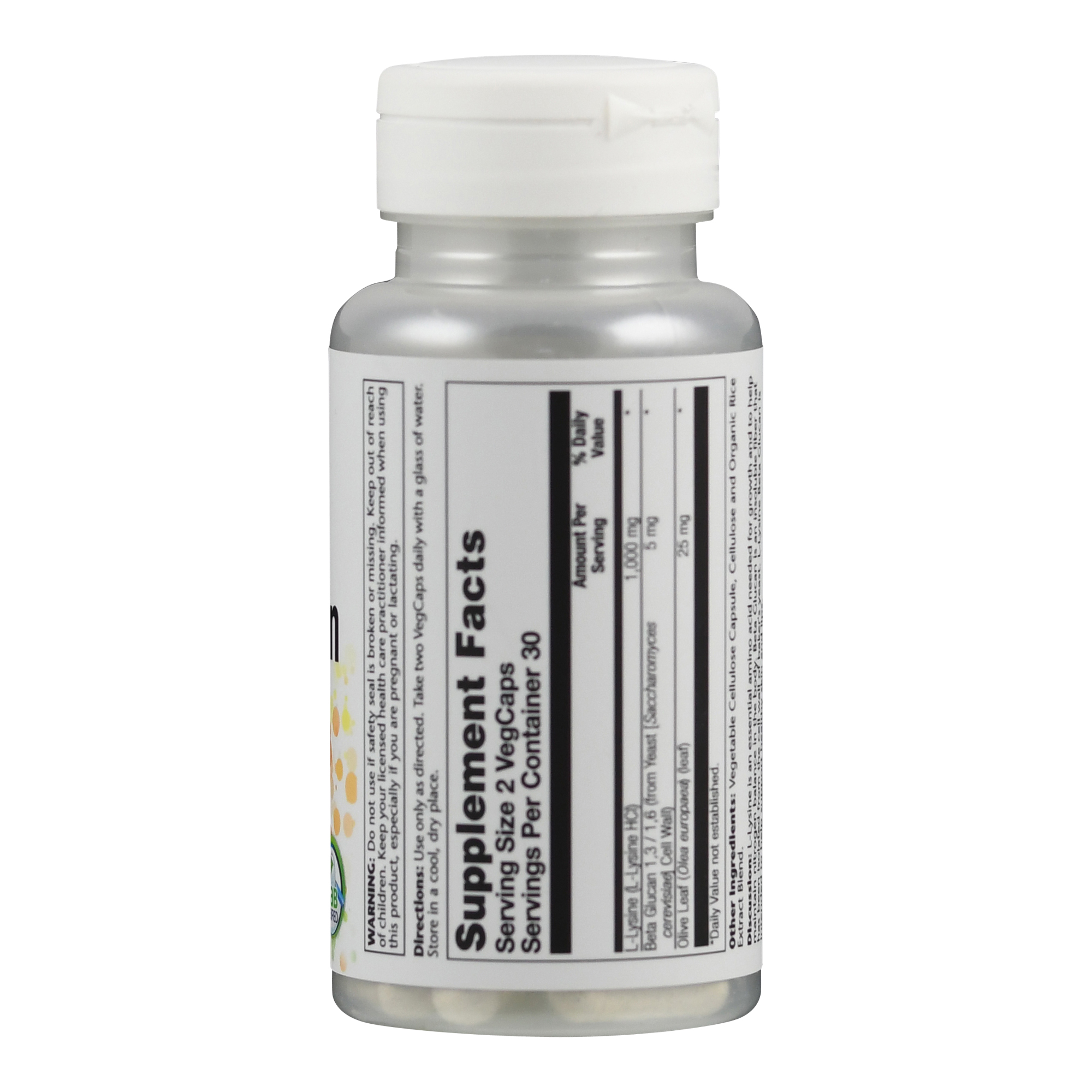 Die Tagesverzehrsempfehlung von 2 Kapseln liefert 1000 mg L-Lysin, 5 mg Beta Glucan und 25 mg Olivenblattextrakt.