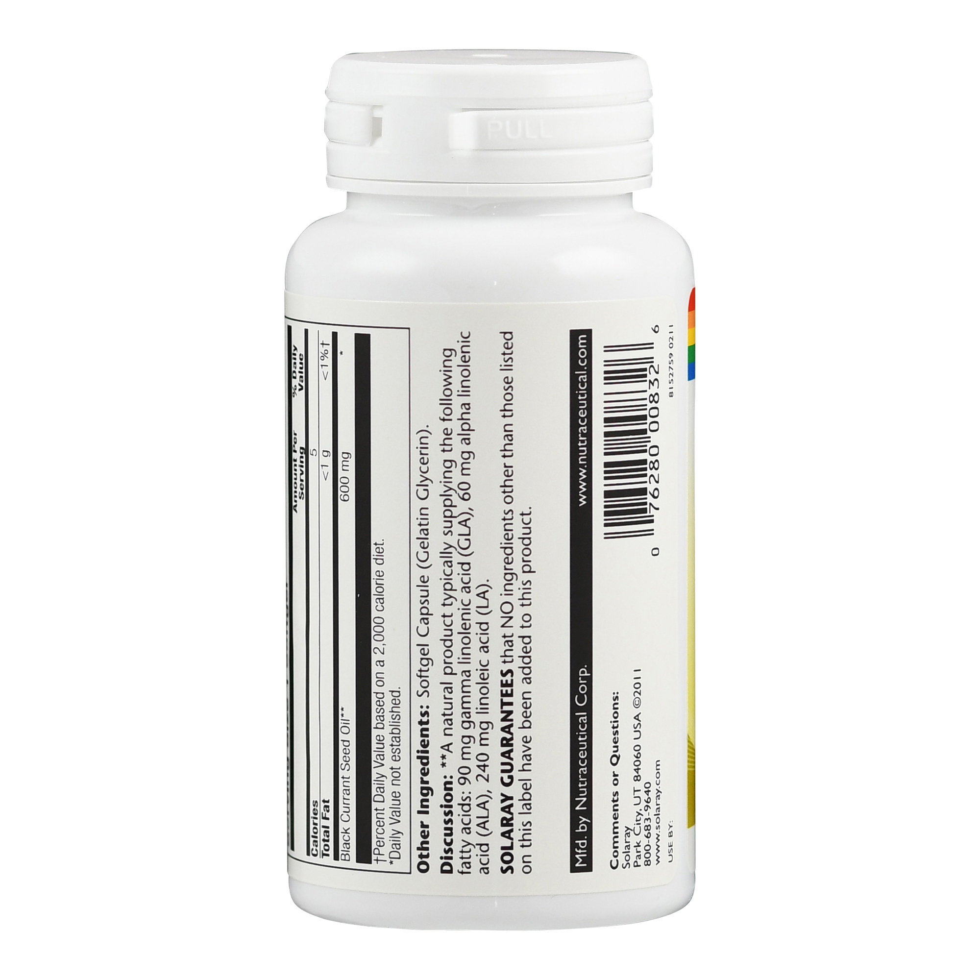 Schwarzes Johannisbeersamenöl liefert 600 mg kaltgepresstes Schwarzes Johannisbeersamenöl pro Kapsel mit einem Gehalt von 90 mg GLA (Gamma-Linolensäure).