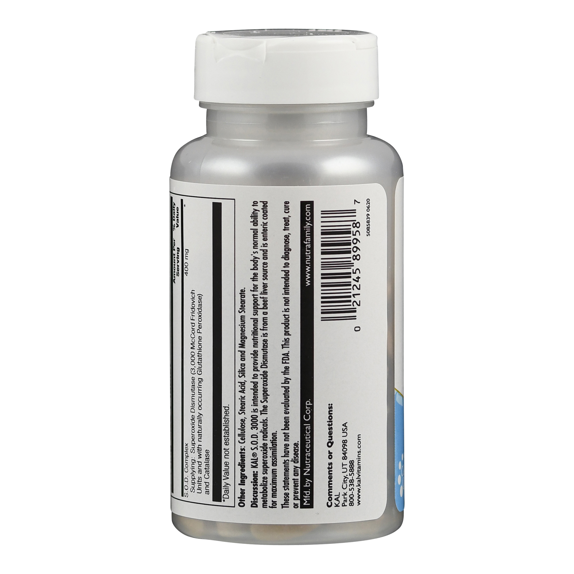S.O.D. 3000 liefert 400 mg S.O.D. Komplex pro Tablette. Der S.O.D. Komplex enthält Superoxid Dismutase (3000 McCord Fridovich Units mit natürlich vorkommender Glutathion-Peroxidase) und Catalase.