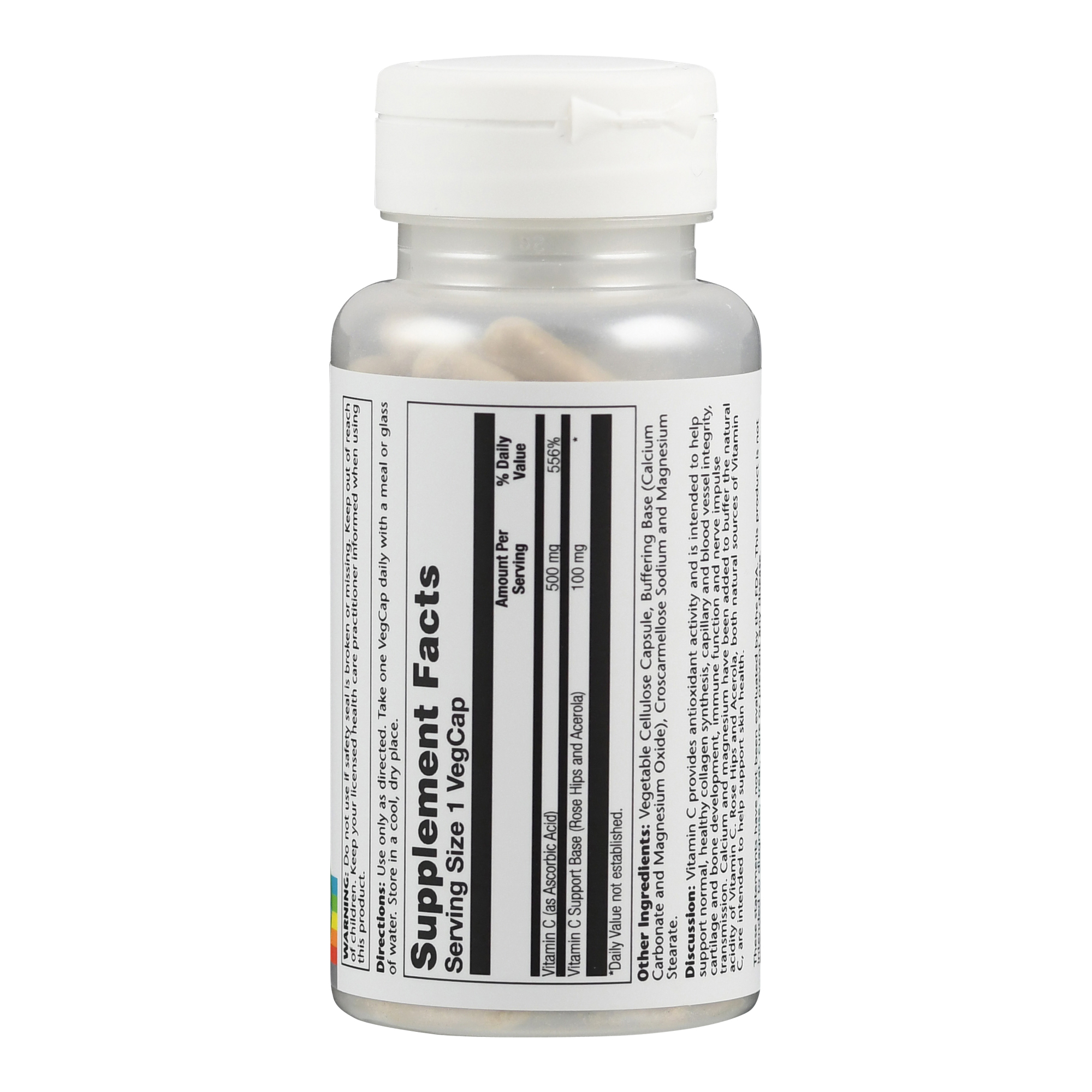 Vitamin C 500 mg liefert 500 mg Vitamin C und 100 mg Hagebutten und Acerola pro Kapsel in einer bekömmlichen Pufferbasis aus Calciumcarbonat und Magnesiumoxid für eine besonders magenschonende Supplementierung.