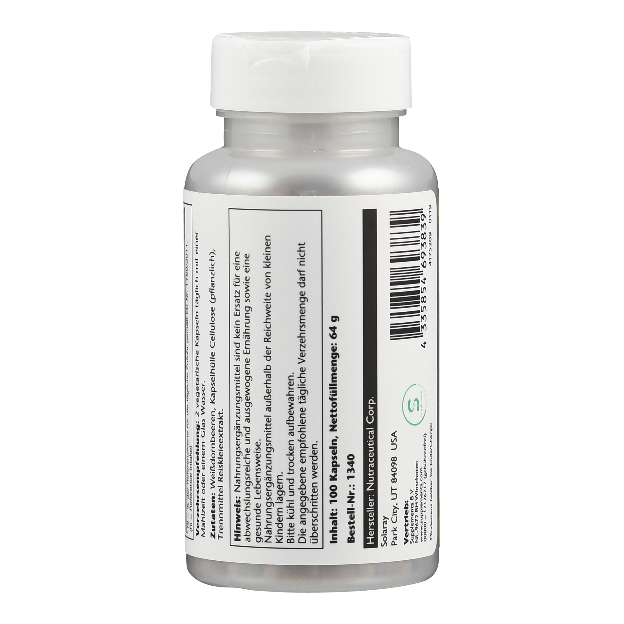 Produkt enthält 100 Kapseln. Zudem ist das Produkt vegan.