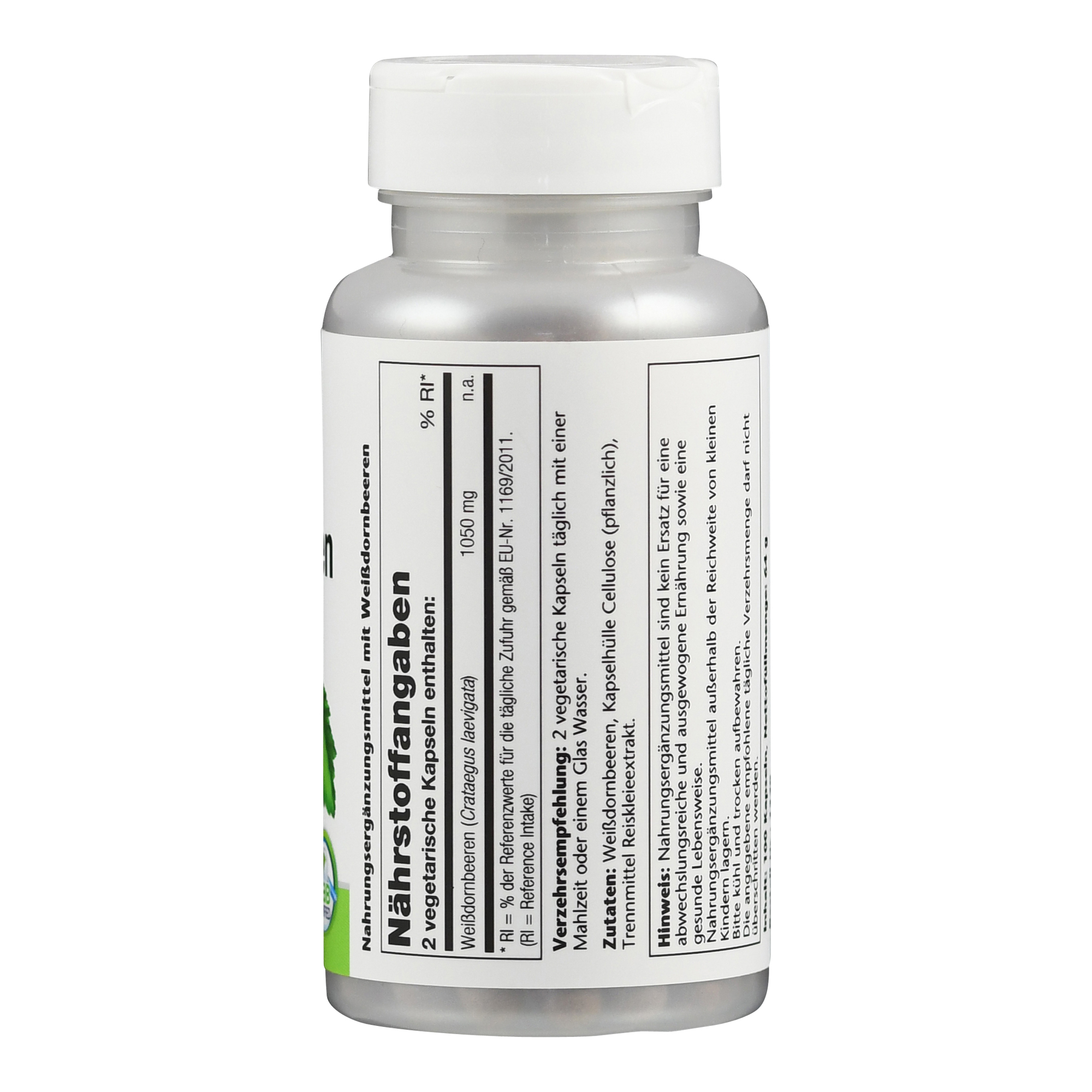 Nahrungsergänzungsmittel mit 525 mg Weißdornbeeren pro Kapsel. Das