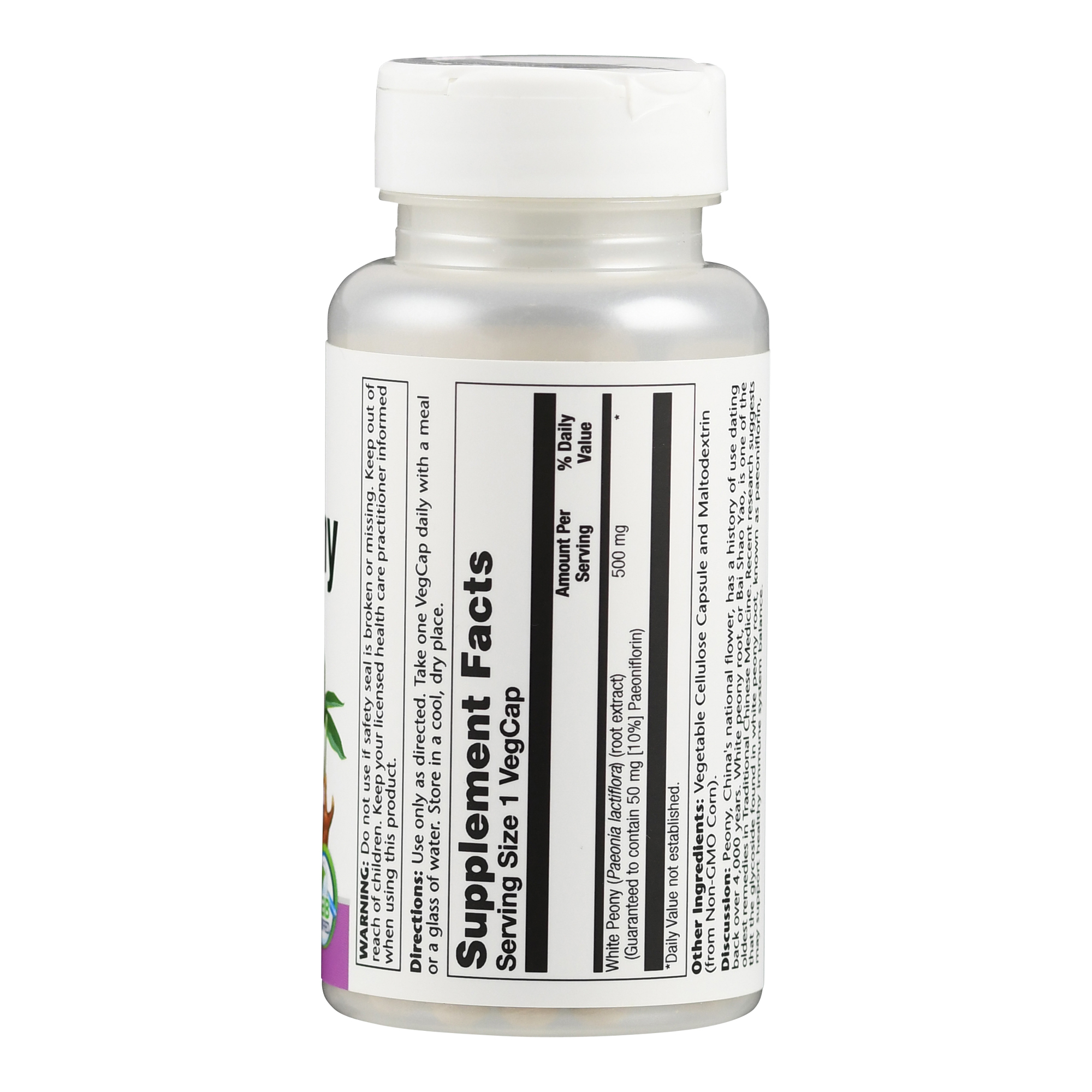 Nahrungsergänzungsmittel mit 500 mg Weißer Pfingstrose pro Kapsel.