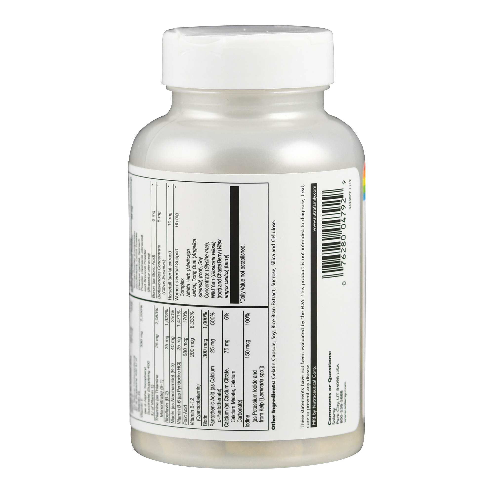 Ein Kräuterkomplex aus Alfalfa, Dong Quai, Soja-Konzentrat, Yamswurzel und Mönchspfeffer sowie ein Carotinoid-Komplex aus Tomaten, Karotten, Spinat und Brokkoli runden die Formel für eine multiple orthomolekulare Unterstützung ab.