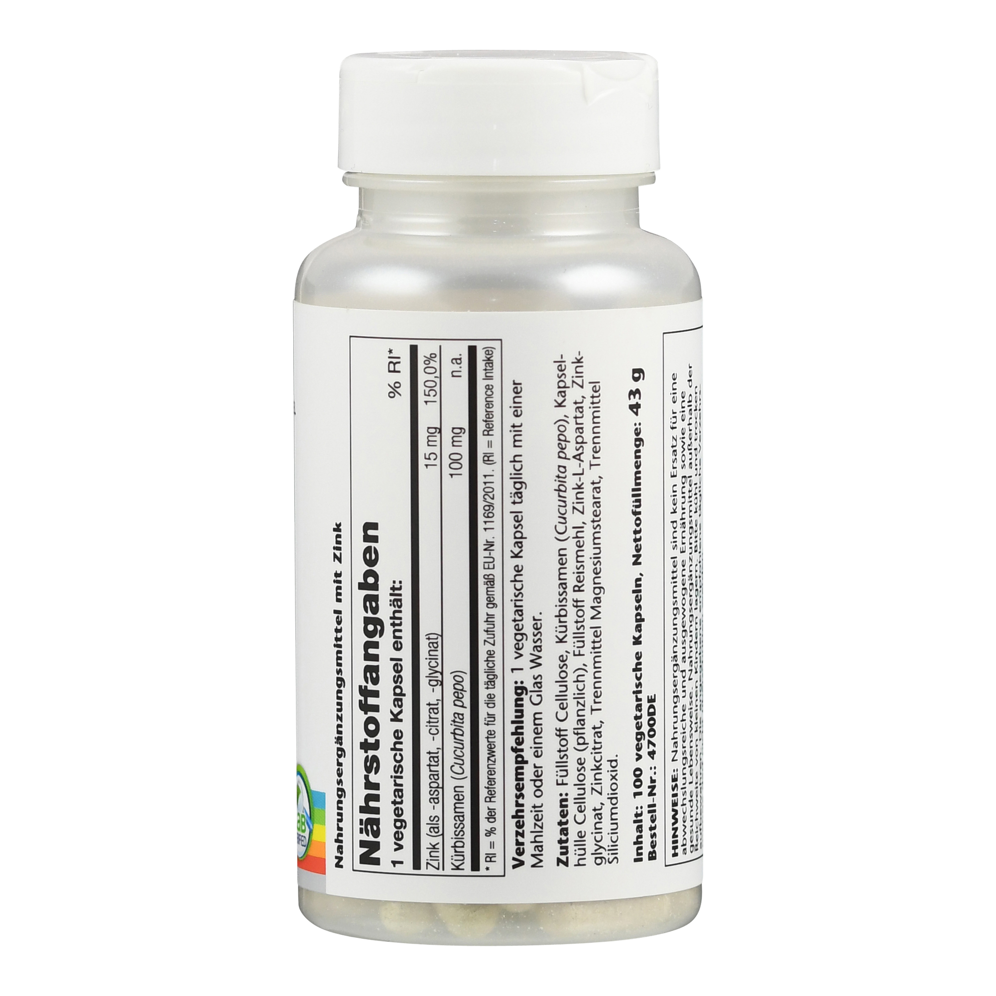 Zink 3x 15 mg liefert 15 mg Zink pro Kapsel. Das Spurenelement