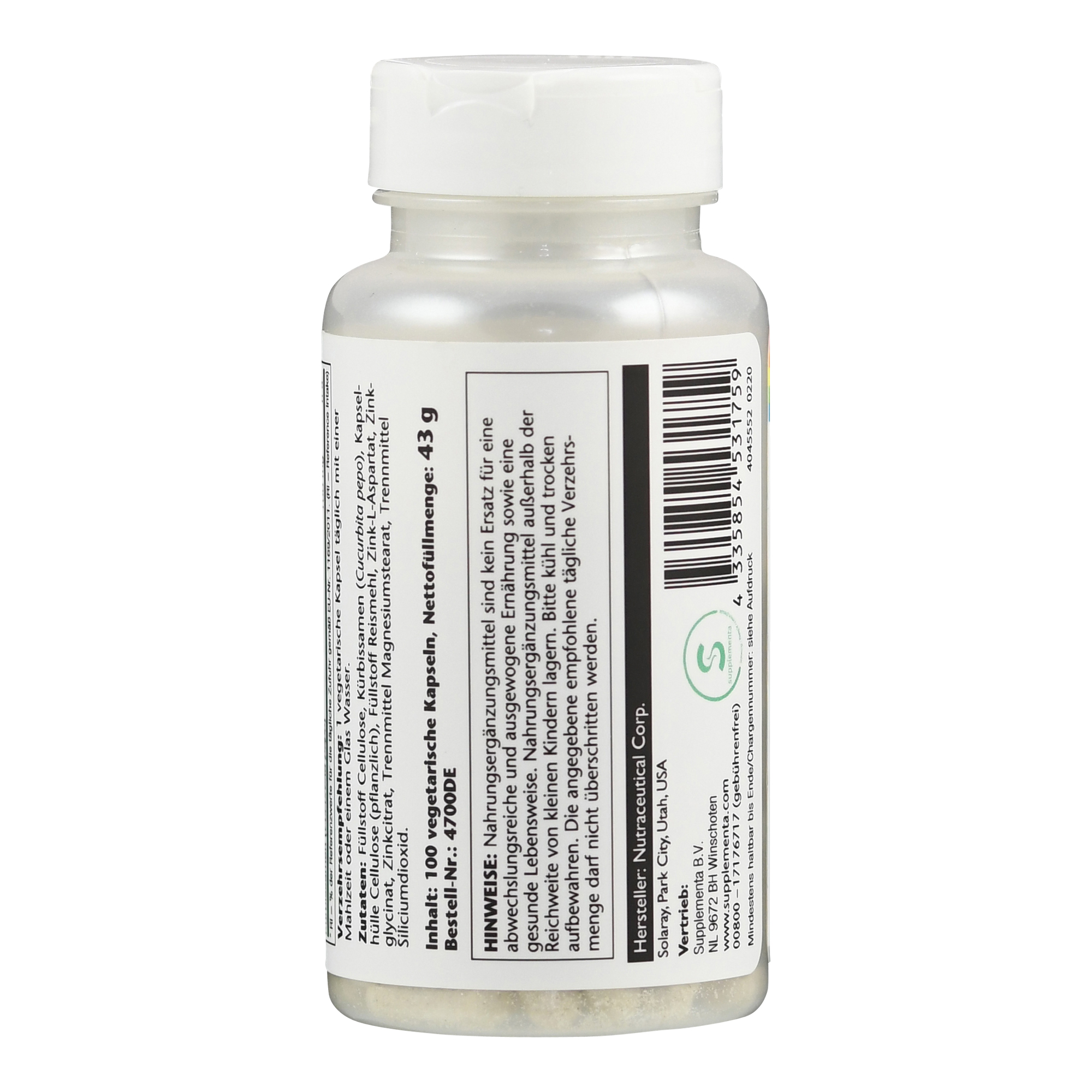 Cellulose (pflanzlich), Reismehl, Zink (als –aspartat, -citrat,