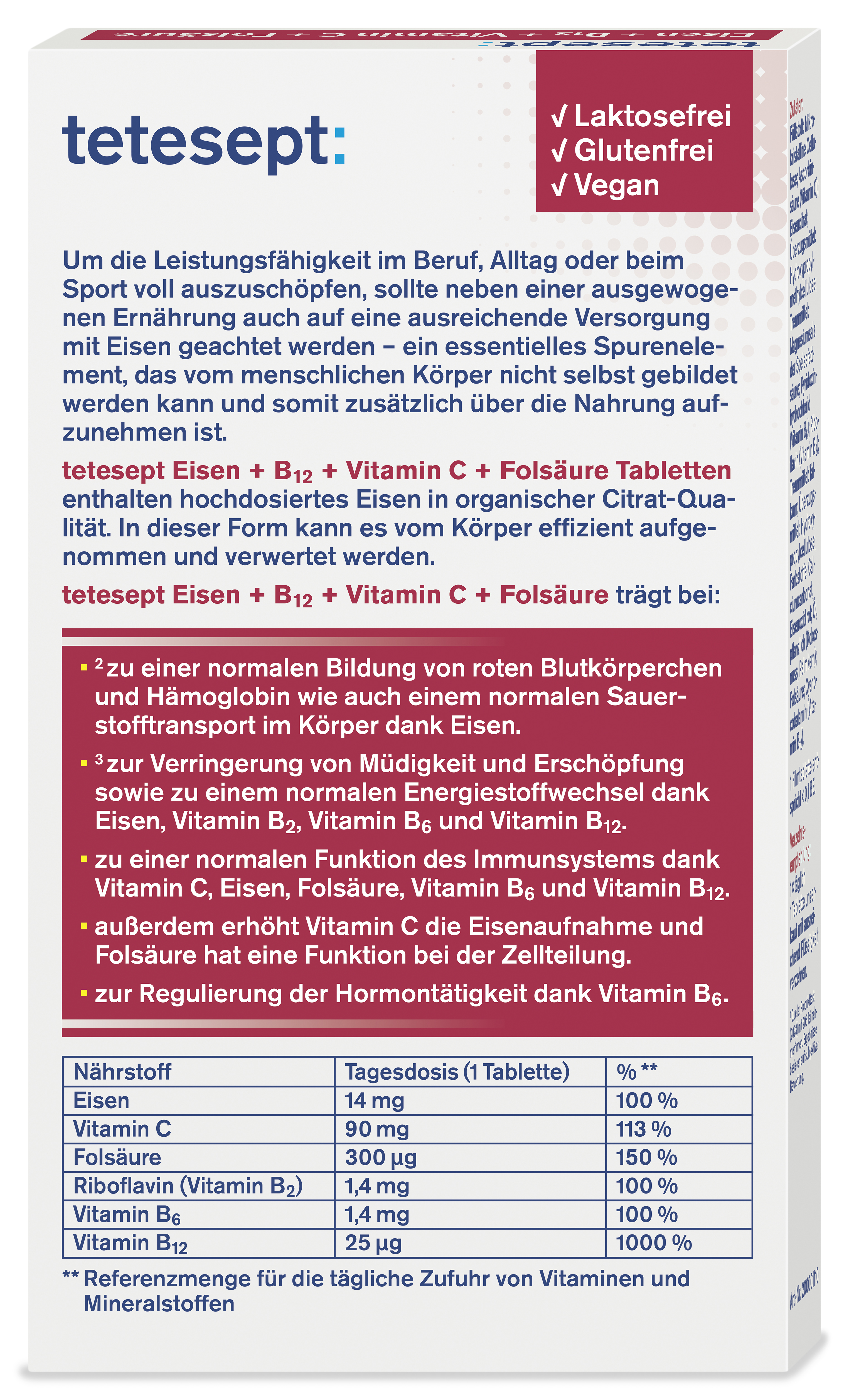 aufzunehmen ist. tetesept Eisen + B12 + Vitamin C + Folsäure