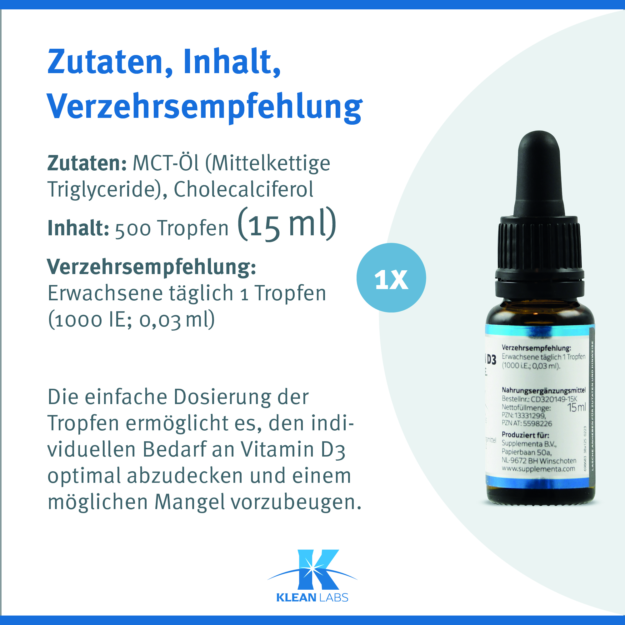 Vitamin D3 1000 I.E. Klean Labs Flüssig (15 ml)