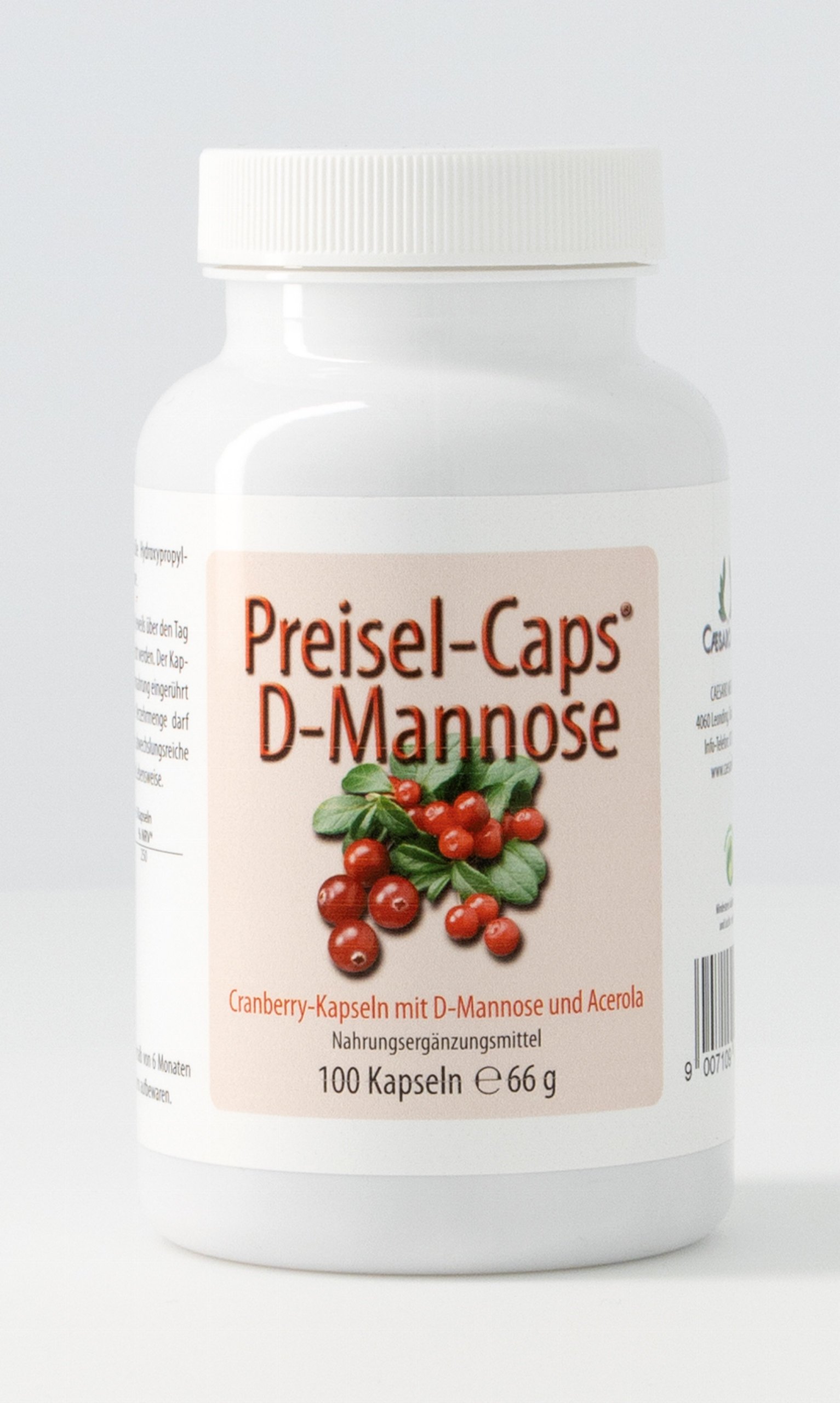 Zutaten: D-Mannose, Acerolaextrakt, Hydroxypropylmethylcellulose (pflanzliche Kapselhülle),Cranberry-Extrakt, Ascorbinsäure (Vitamin C)
