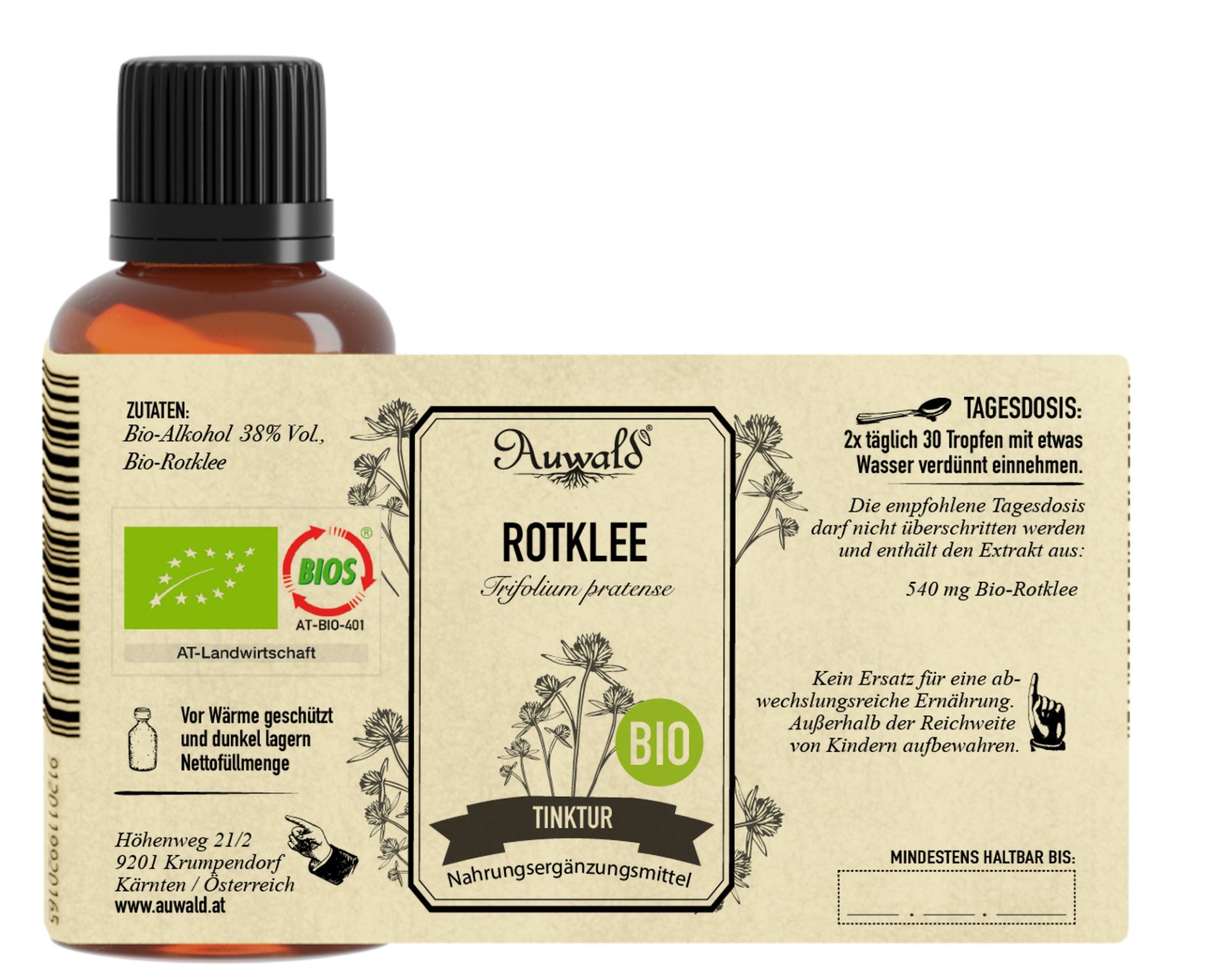 Auwald® - Rotklee - BIO Tropfen (Auszug, Extrakt, Essenz) (100 ml)