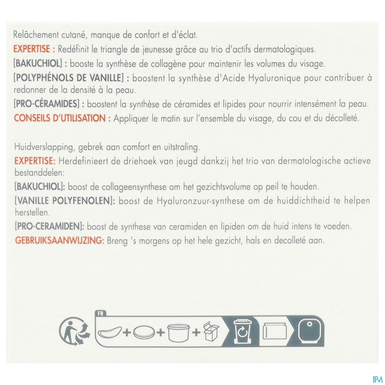 Tagescreme mit einem TRIO aus restrukturierenden Aktivstoffen, darunter 1 % Bakuchiol – so aktiv wie Retinol, aber mit besserer Verträglichkeit. Sie wirkt wie ein Kollagen-Booster, um die Haut zu verdichten. Die Creme DEFINIERT DAS JUGENDDREIECK NEU.