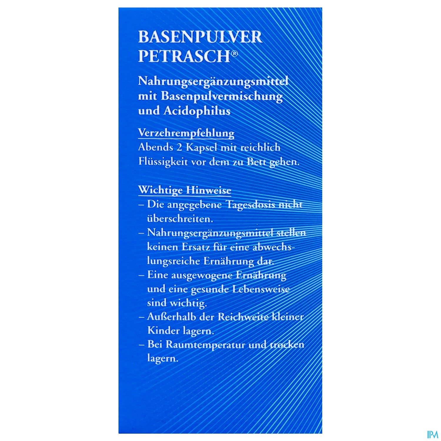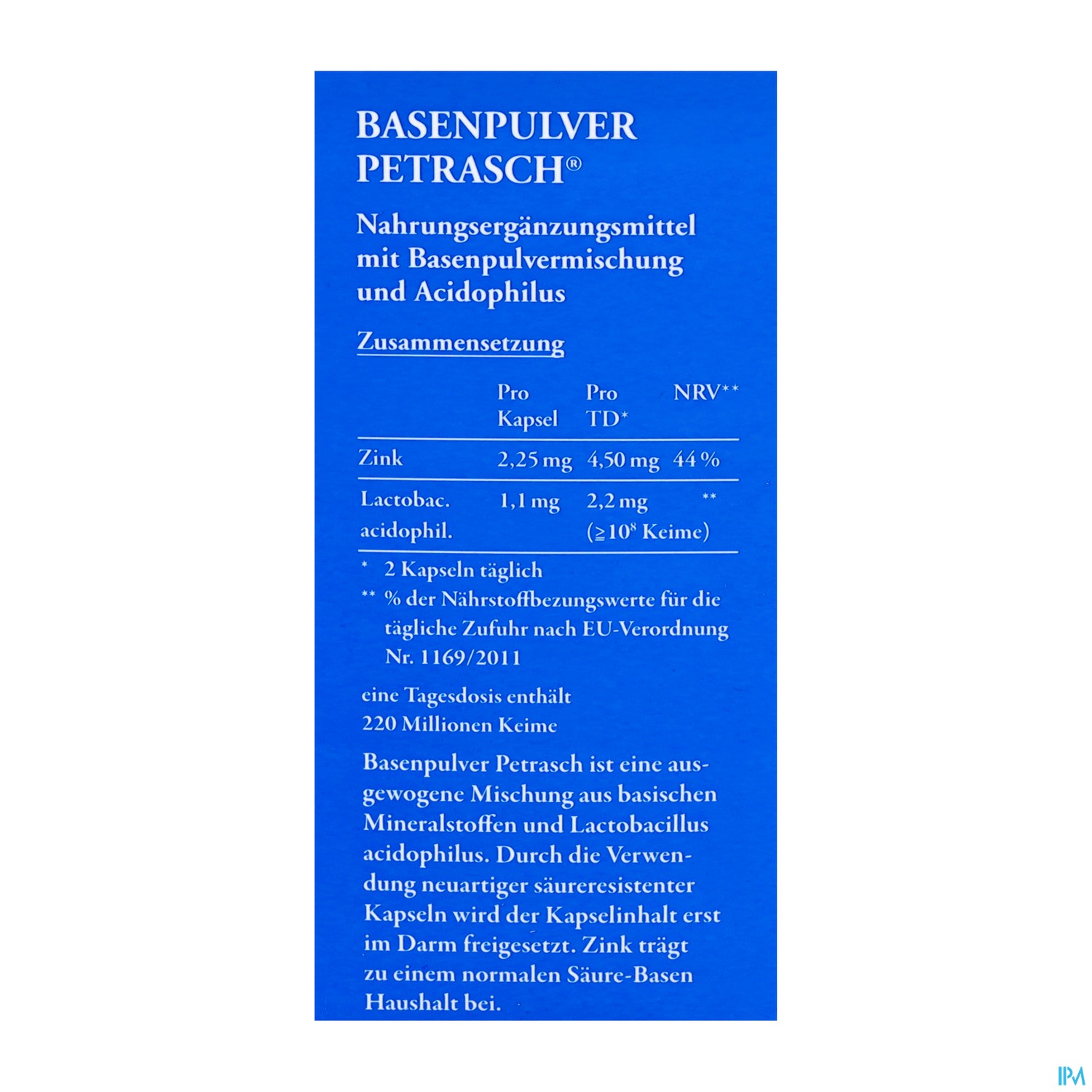 Wie alle Petrasch Produkte wirkt Basenpulver Petrasch als System. Das enthaltene Zink trägt ebenfalls zu einem normalen Säure-Basen Stoffwechsel bei.