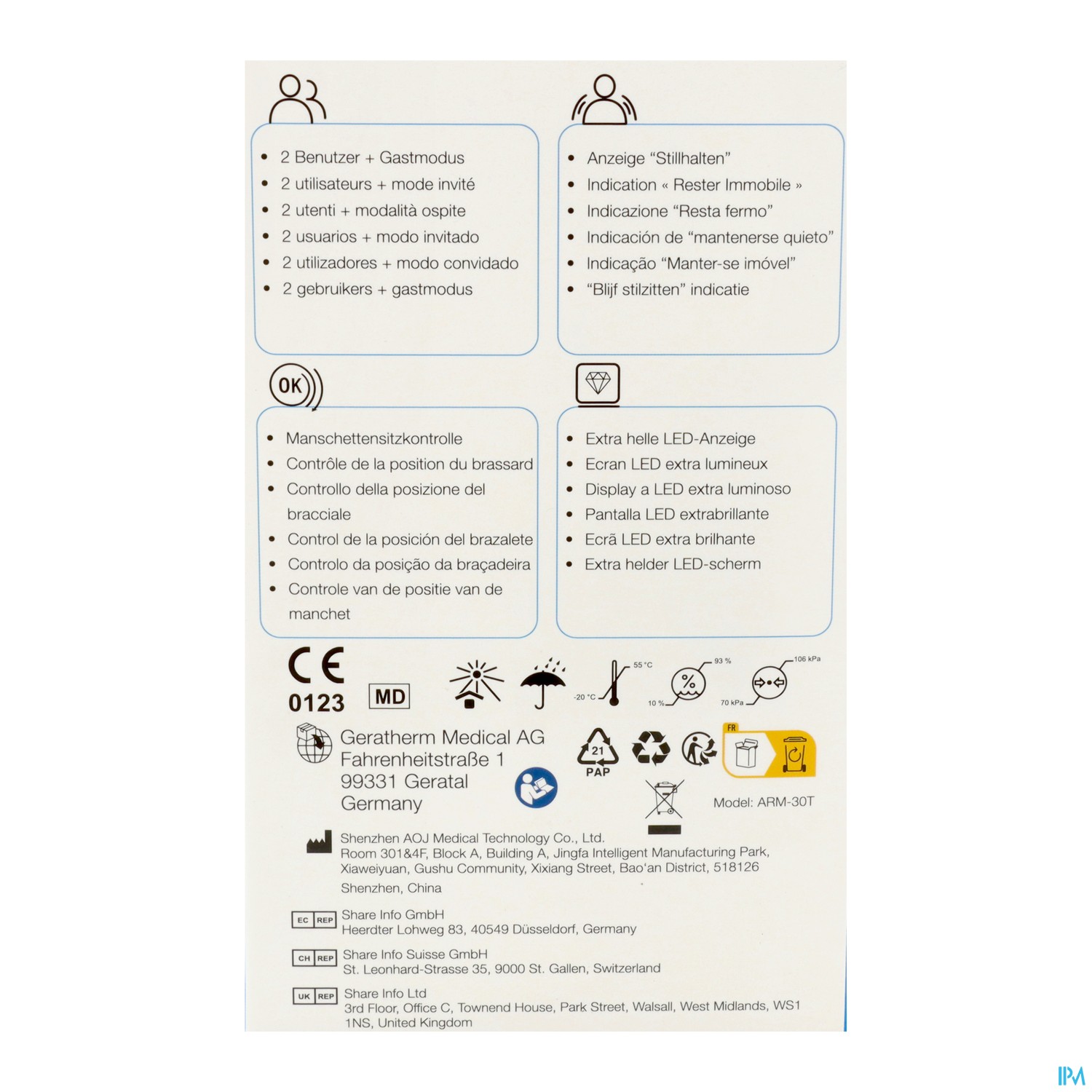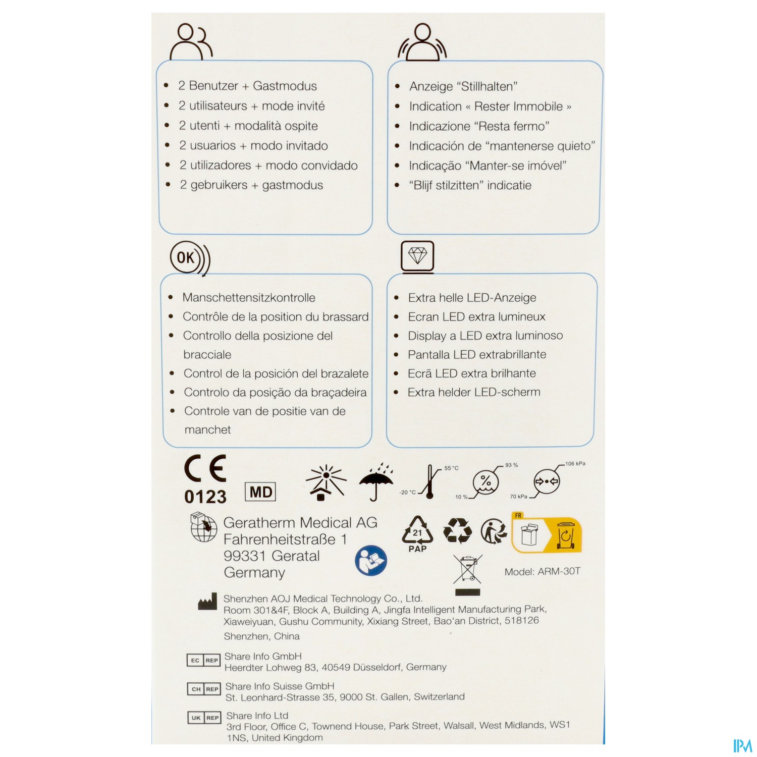 Das Geratherm® vivo kann von bis zu zwei Benutzern und einem Gast verwendet werden und speichert bis zu 199 Messwerte für jeden der zwei Benutzer. Dadurch eignet es sich für Paare und Familien. Weiterhin bietet das Gerät die Möglichkeit zur Durchschnittswertermittlung der letzten Messungen.