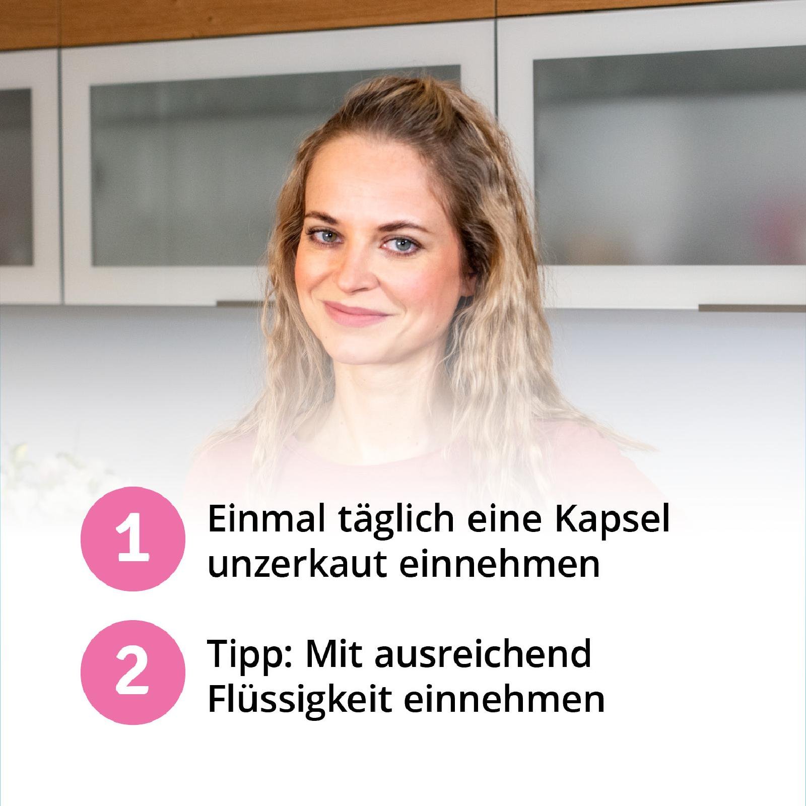 Täglich eine Kapsel mit ausreichend Flüssigkeit einnehmen.