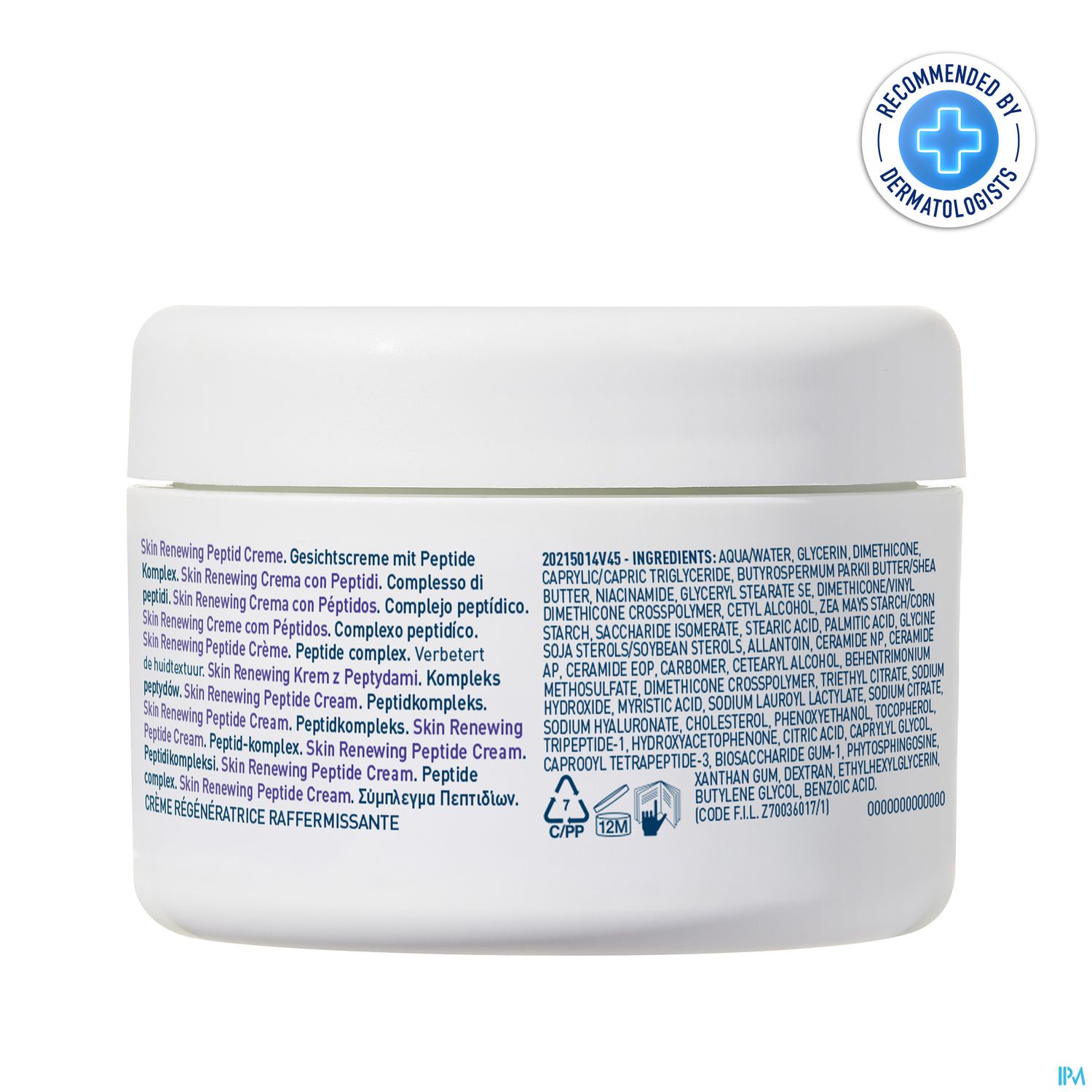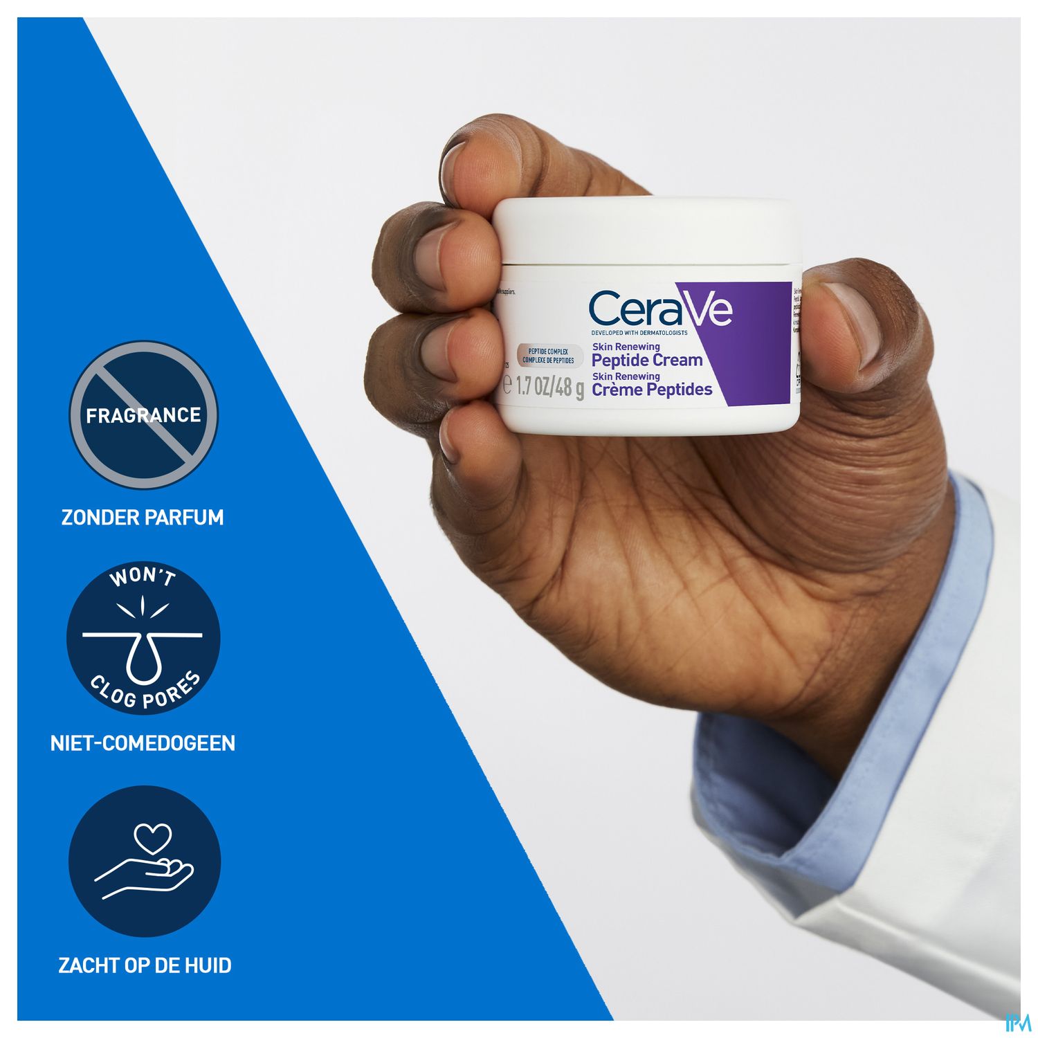 Die CeraVe Skin Renewing Peptid Creme spendet der Haut intensive Feuchtigkeit und verleiht ihr gleichzeitig mehr Spannkraft. Wegen ihrer leichten Textur zieht die reichhaltige Anti-Aging-Creme schnell ein und verbessert dank Peptid-Komplex über Nacht das Aussehen von müder, fahler Haut. Durch ihre nicht komedogene Formel ohne Duftstoffe ist die Nachtcreme für alle Hauttypen geeignet.