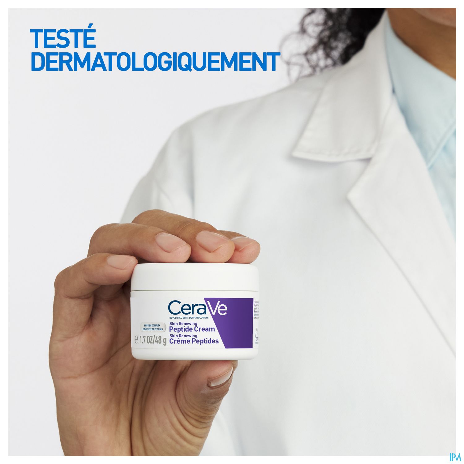 Die CeraVe Skin Renewing Peptid Creme wird täglich nach der abendlichen Gesichtsreinigung aufgetragen. Zuerst die Nachtcreme auf die Fingerspitzen geben und sanft in die Haut einmassieren, bis die Creme eingezogen ist.
