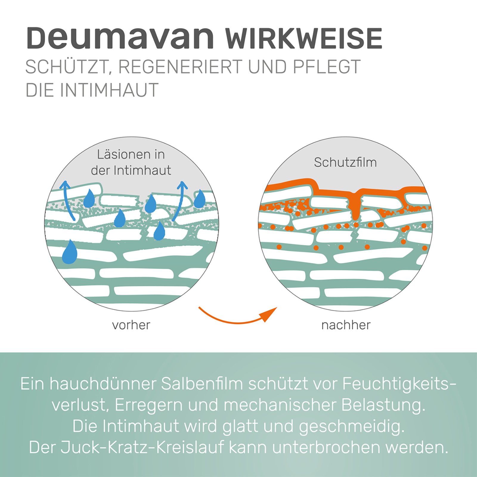 Deumavan Schutzsalbe (hormonfrei) lindert Schmerz und Juckreiz, beruhigt, schafft Erleichterung, kann Infektionen vermeiden, ermöglicht und unterstützt den natürlichen Heilungsprozess: