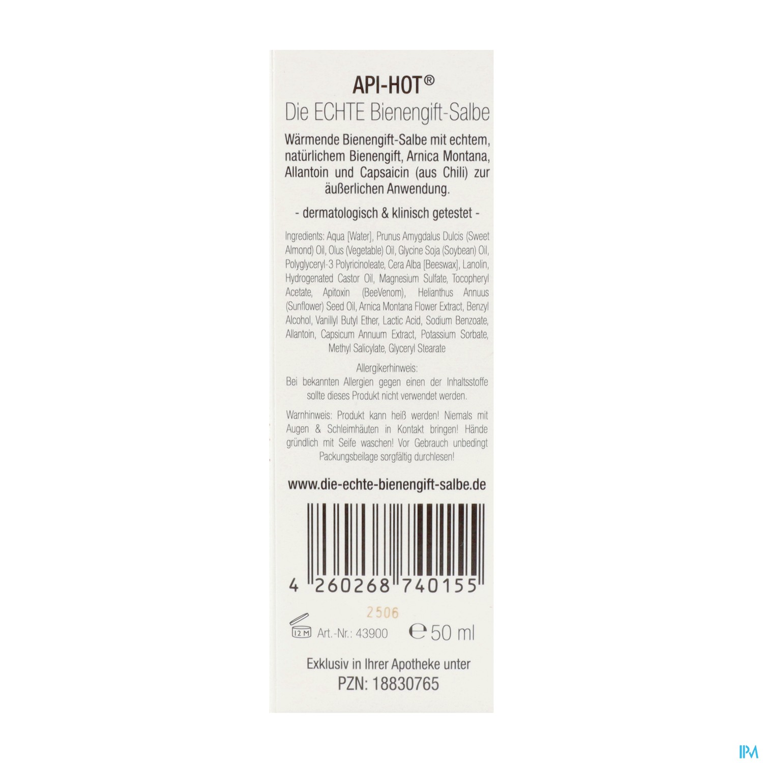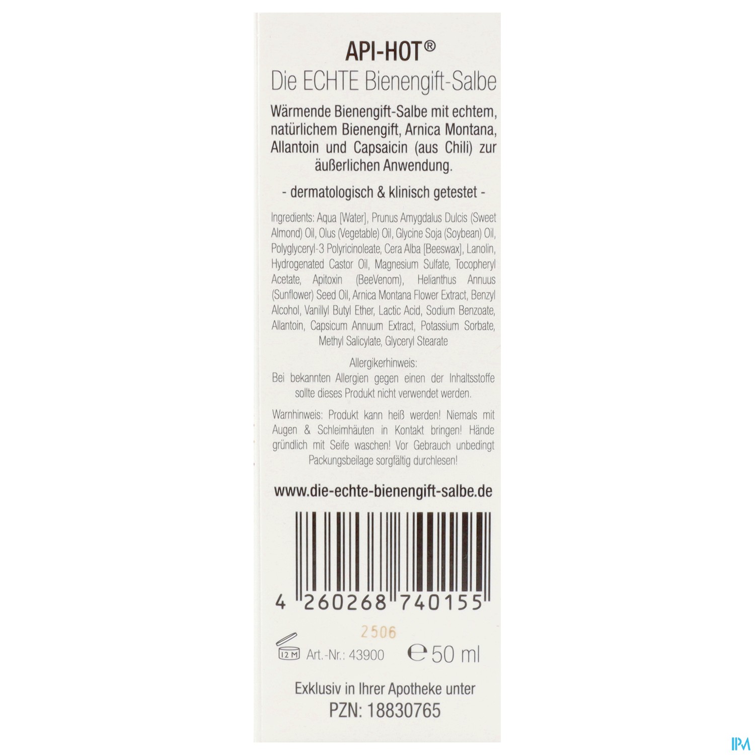 - Inhalt: 50 ml API-HOT® Die ECHTE Bienengift-Salbe