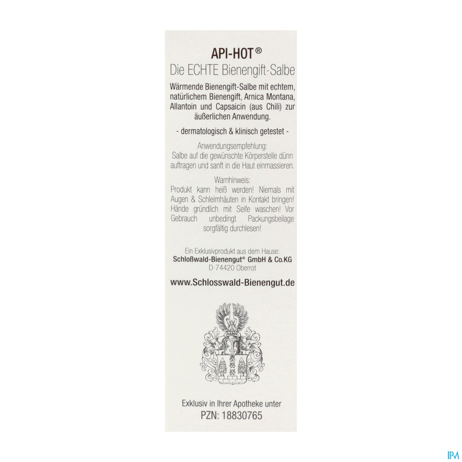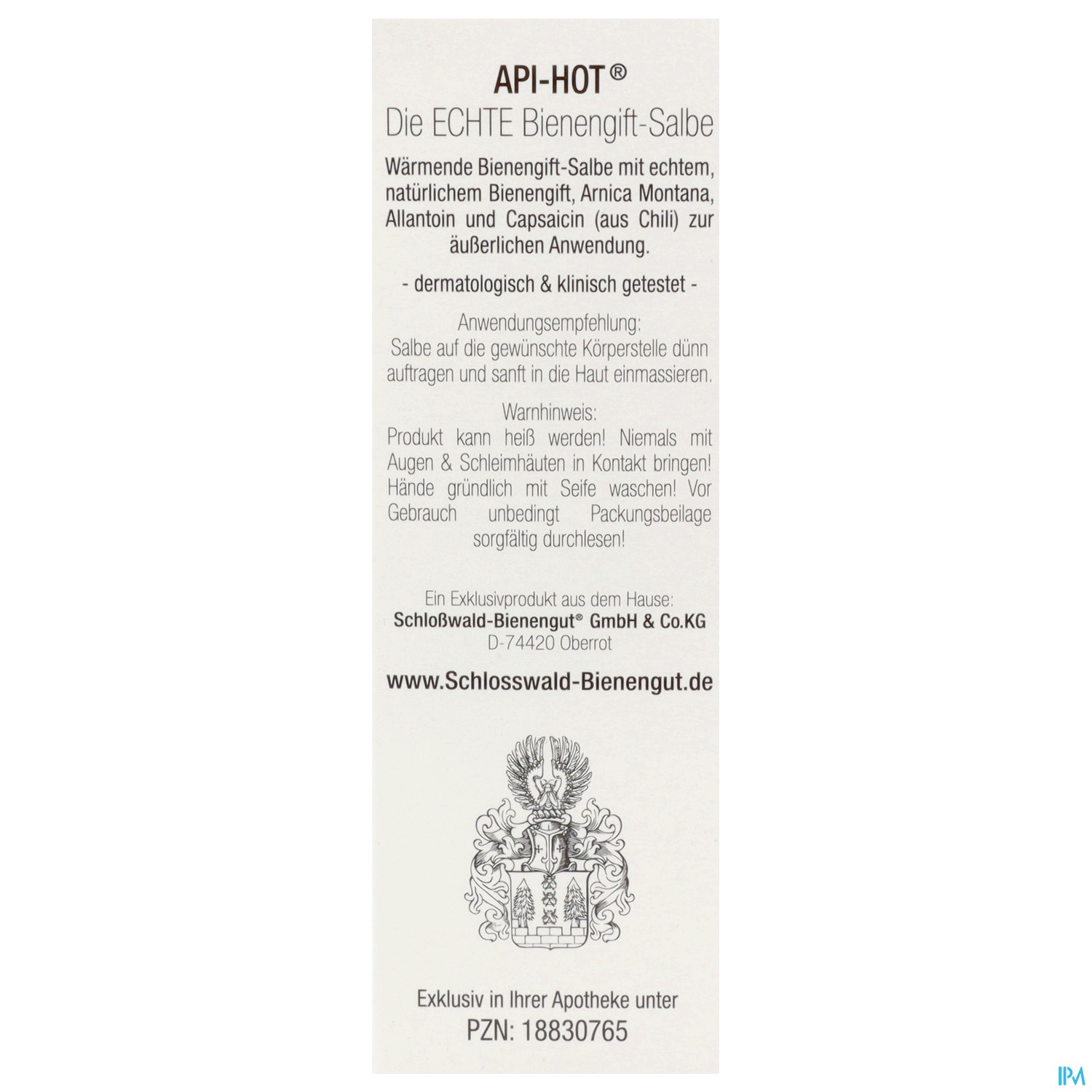 API-HOT® Die ECHTE Bienengift-Salbe ist die einzigartige Bienengift-Salbe aus dem Hause Schloßwald-Bienengut®, dem derzeit einzigen deutschen Hersteller für weltweit zugelassene Produkte mit echtem Bienengift, hinter denen noch eine echte Imkerei-Familie mit Fach-Expertise in inzwischen sechster Generation für deren Spitzenqualität mit Ihrem Namen einsteht!