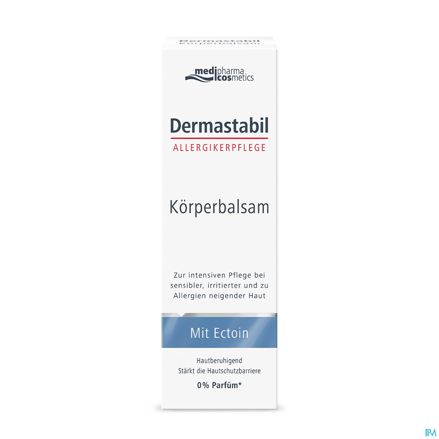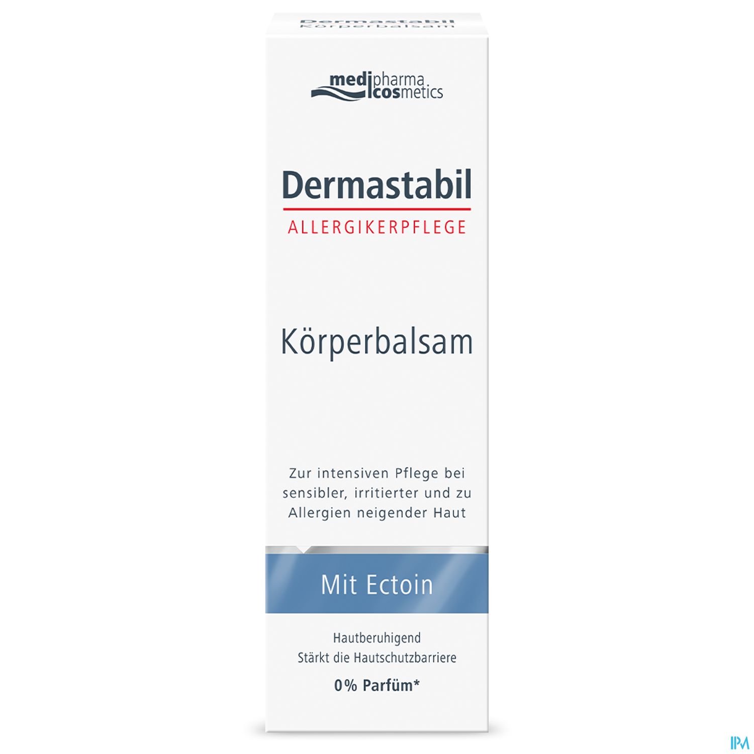 Dermastabil KörperbalsamMit EctoinHautberuhigender Körperbalsam für sensible, irritierte und zu Allergien neigende Haut. Einige Körperstellen, wie z.B. Ellenbogen und Knie, sind besonders häufig von trockener, irritierter Haut betroffen. Dermastabil Körperbalsam von medipharma cosmetics pflegt die Haut am ganzen Körper. Er stärkt und stabilisiert die natürliche Hautschutzbarriere und pflegt die von externen Stressfaktoren wie Allergenen und schädlichen Umweltschadstoffen belastete Haut. Dermastabil Körperbalsam mit der Wirkstoffkombination aus Ectoin und Glycerin wirkt hautberuhigend und kann Juckreiz lindern.