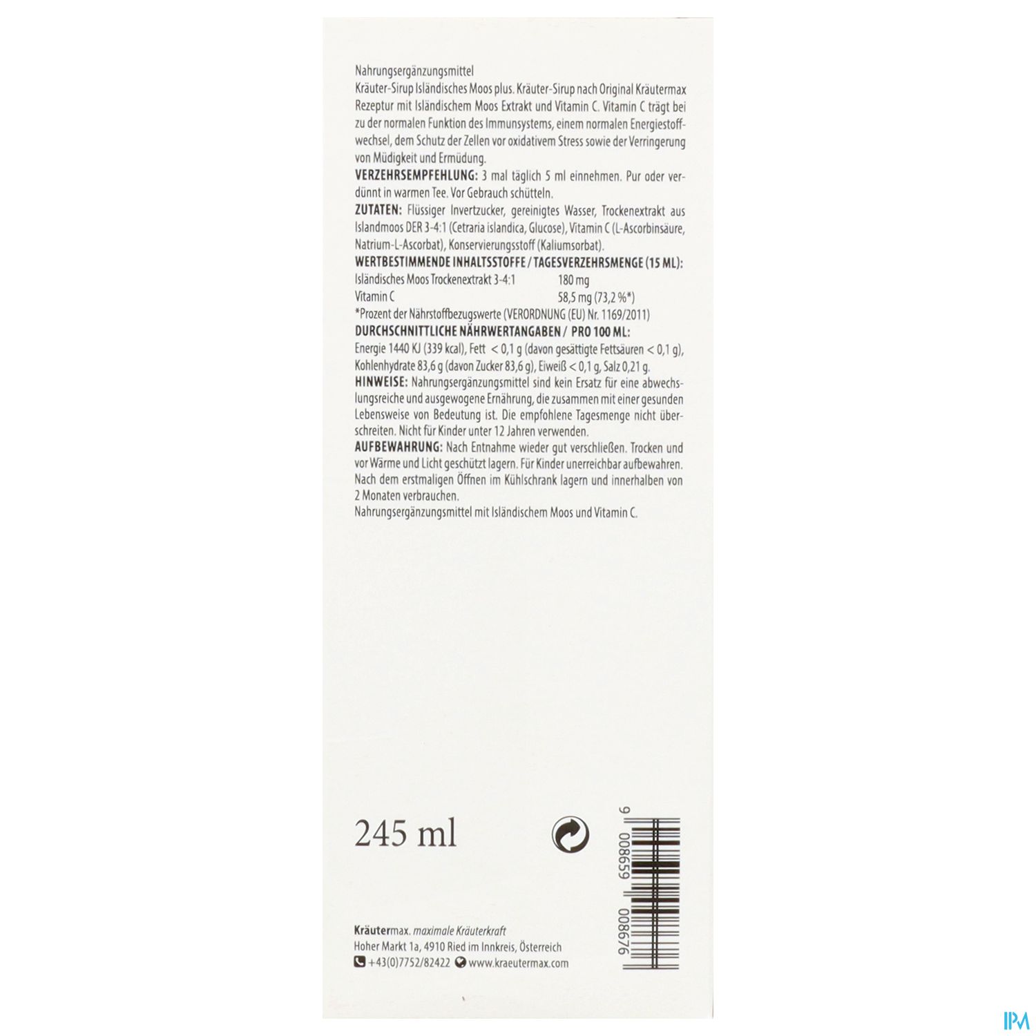 Islaendisch Moos Hustensirup +vitamin C Gelatine+fructosefrei 245ml ist ein Nahrungsergänzungsmittel, das in Ihrer Apotheke vor Ort oder in einer Online-Apotheke erhältlich ist. Nehmen Sie nicht mehr als die auf der Verpackung angegebene empfohlene Tagesdosis ein. Es ist kein Ersatz für eine gesunde Lebensweise und eine abwechslungsreiche und ausgewogene Ernährung. Fragen Sie Ihren Apotheker um Rat. Bewahren Sie das Produkt immer außerhalb der Reichweite von Kindern auf.