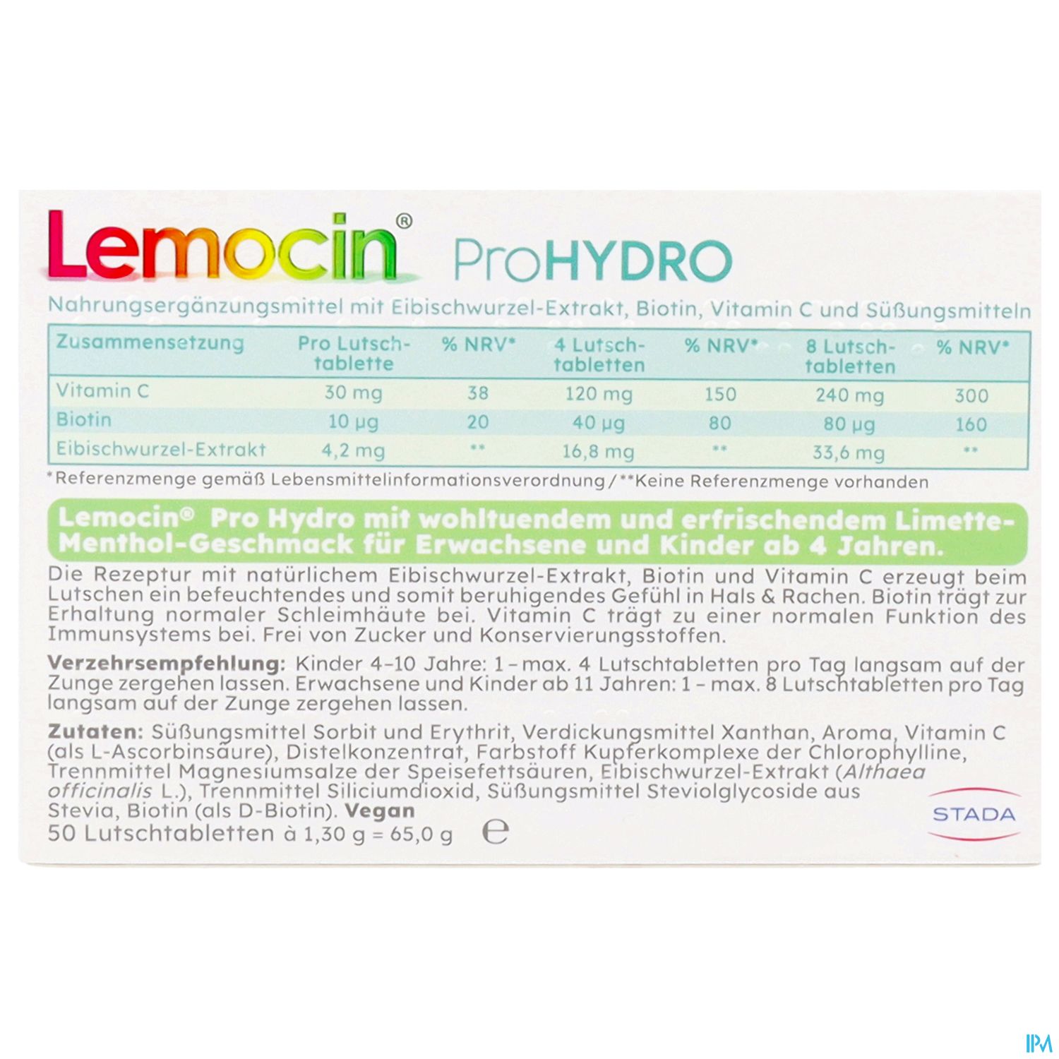 - Befeuchtet und beruhigt Hals und Rachen