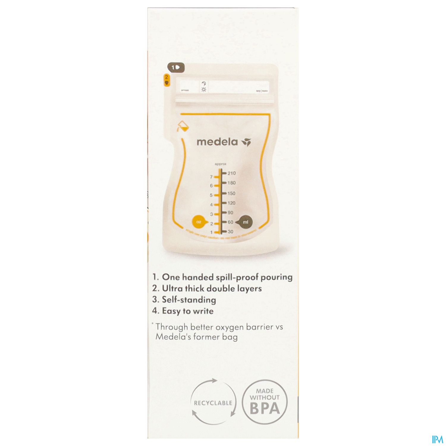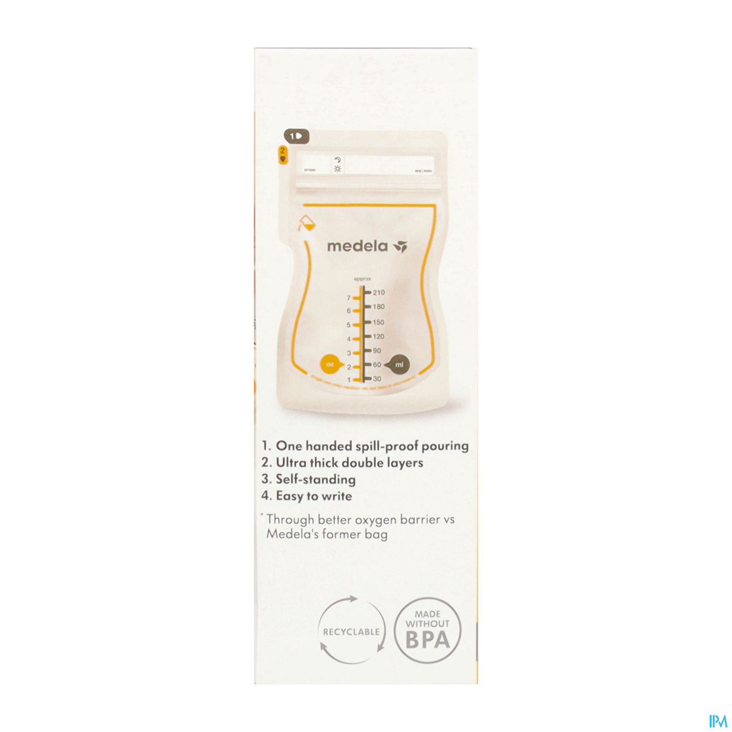 Die Easy Pour Muttermilch sind recycelbare Einwegbeutel, in denen Sie Ihre frisch abgepumpte Muttermilch im Kühlschrank oder Gefrierschrank aufbewahren können. Sie haben zwei Öffnungen. Lasche 1 zum Einfüllen und Lasche 2 zum einhändigen Ausgießen der Muttermilch. Sie schützen die Muttermilch 10x besser als die früheren Beutel von Medela dank einer besseren Sauerstoffbarriere. Sie haben ein Fassungsvermögen von 210 ml, einen doppelten Verschluss für zusätzlichen Auslaufschutz, sei sie können sehr flach eingefroren werden und tauen schnell auf. Außerdem lassen sie sich aufrecht hinstellen, für einfaches Befüllen. Die Skala zeigt die Menge genau an und es gibt ein selbsterklärendes Beschriftungsfeld, um die Menge und das Datum einzutragen. Durch Einkreisen von Mond oder Sonne auf dem Beutel kann man notieren zu welcher Tageszeit die Milch abgepumpt wurde.