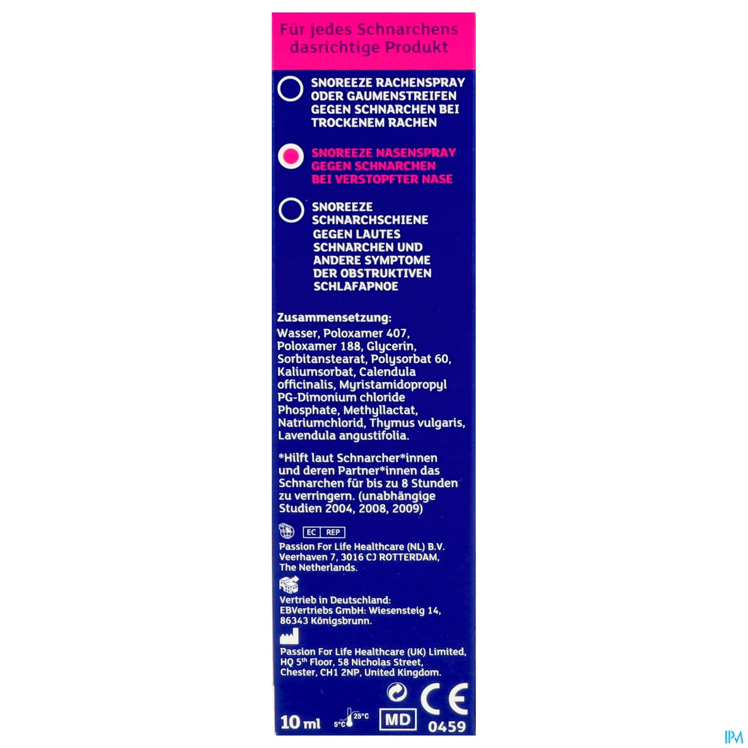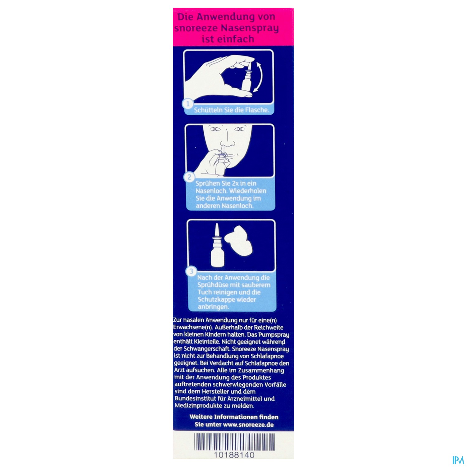 Nur für die nasale Anwendung durch einen Erwachsenen. Außerhalb der Reichweite von kleinen Kindern aufbewahren. Die Sprühpumpe enthält Kleinteile. An einem kühlen, trockenen Ort unter 25°C lagern. Snoreeze Nasenspray sollte bei Raumtemperatur verwendet werden. Snoreeze empfiehlt, wenn Sie schwanger sind oder stillen, vor der Anwendung Ihren Arzt aufzusuchen.