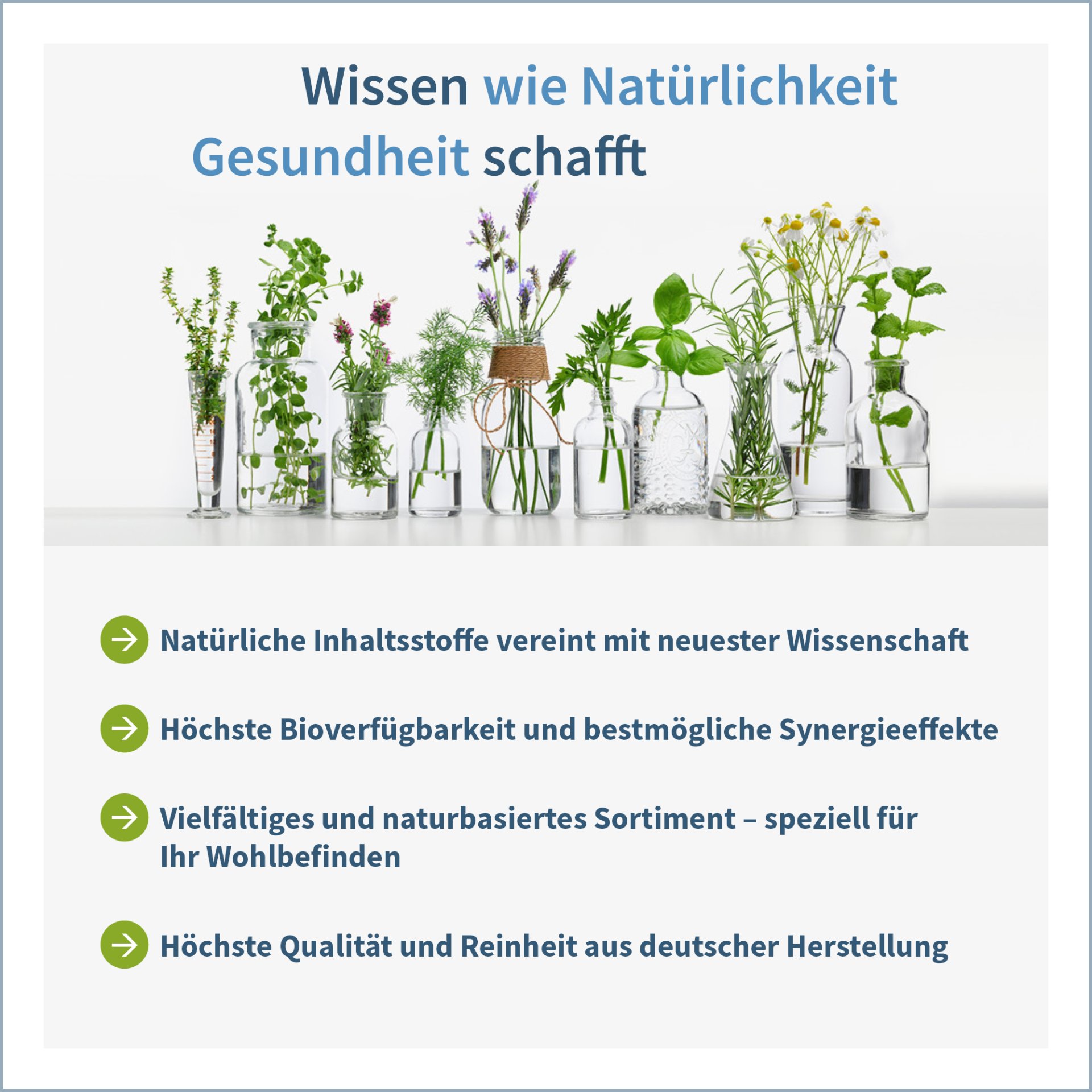Nahrungsergänzungsmittel sollten nicht als Ersatz für eine ausgewogene und abwechslungsreiche Ernährung sowie für eine gesunde Lebensweise verwendet werden. Außerhalb der Reichweite von kleinen Kindern aufbewahren. Verschlossen, kühl, trocken und lichtgeschützt lagern. Die angegebene empfohlene tägliche Verzehrsmenge darf nicht überschritten werden.