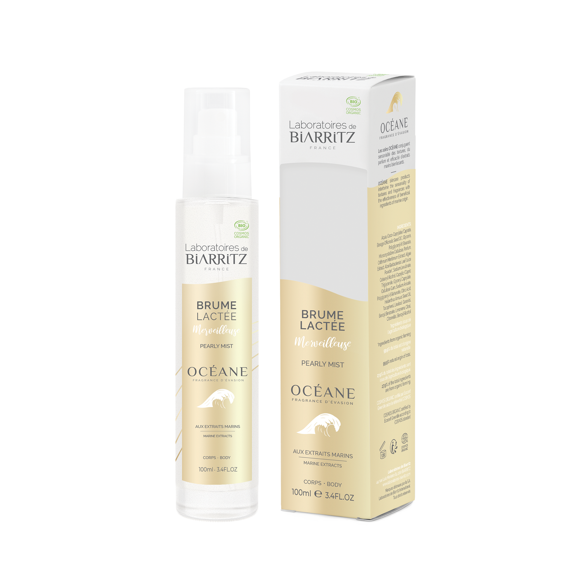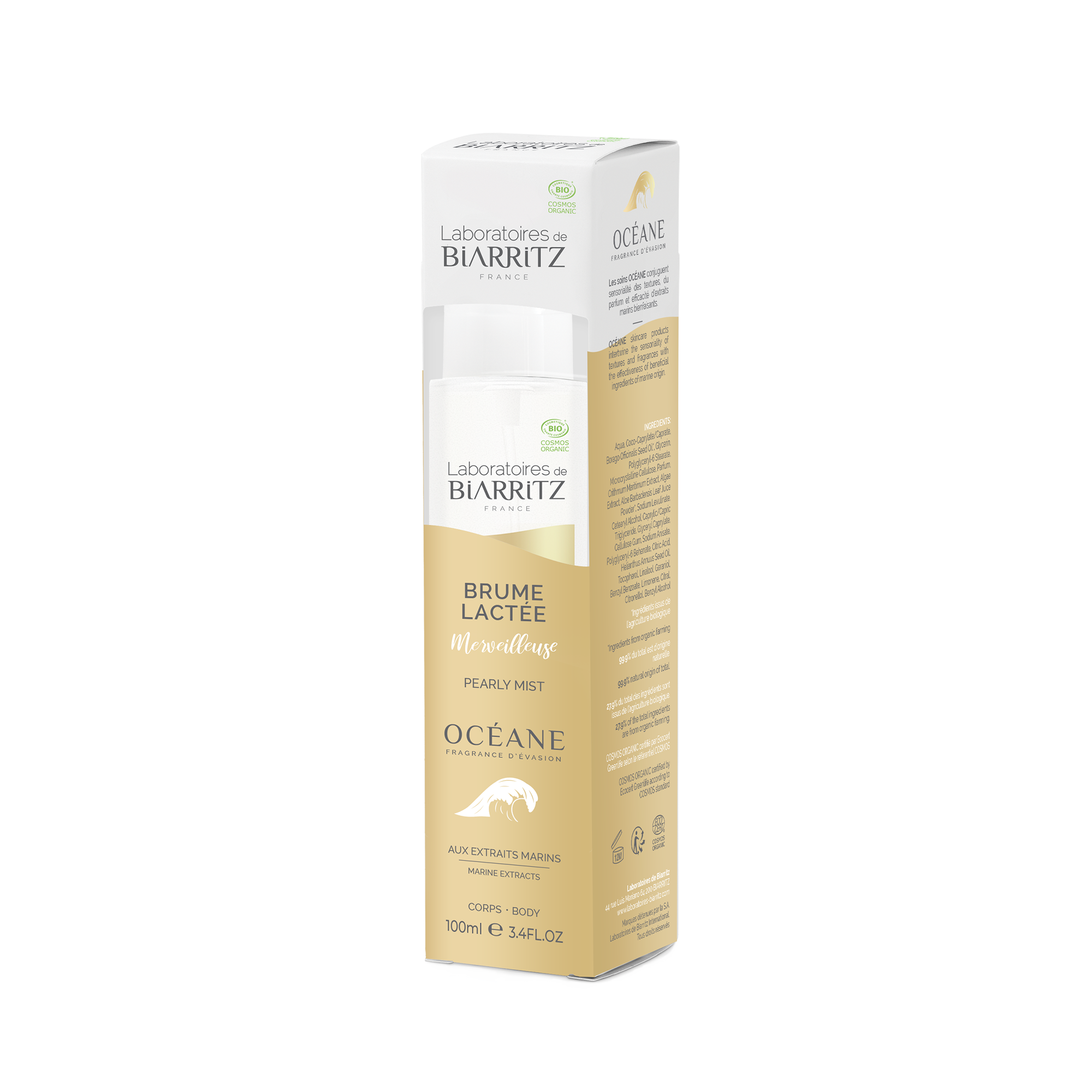 Das Océane Pearly Mist ist eine leichte Körpermilch in Sprayform, die die Haut erfrischt und befeuchtet.