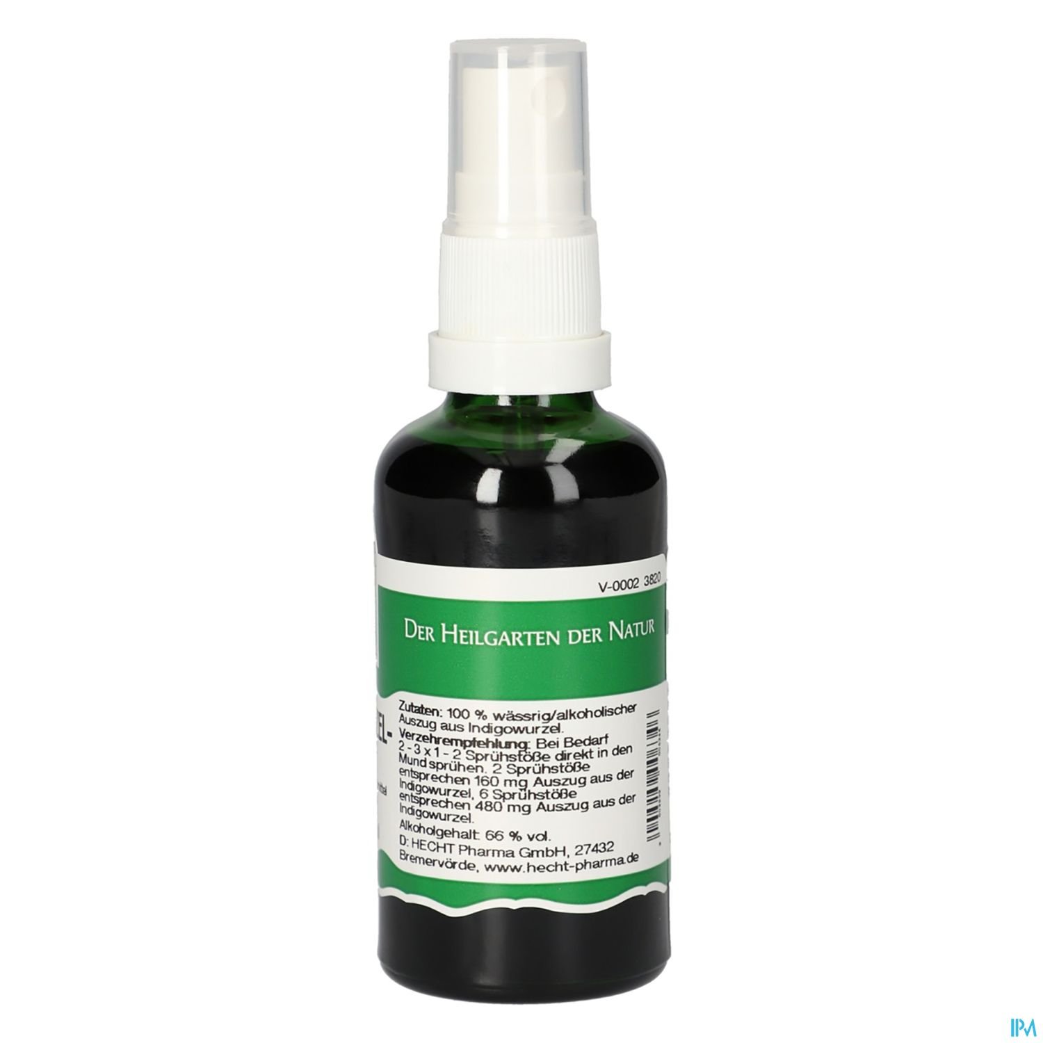 zusammensetzung:indigowurzelspray Enthält Einen Hochwertigen wässrig/alkoholischen Auszug aus Indigowurzel. Der Auszug Wird Nach vorgaben Des Arzneibuches im Verhältnis 1:5 Hergestellt. alkoholgehalt: 66 % Vol.